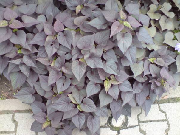 Möchstest Du eine Pflanze aus einer der bei uns in den Märkten erhältlichen israelischen Süßkartoffeln ziehen (Anleitungen gibt's im Internet), dann erhälst Du eine Pflanze, die aussieht, wie die auf Deinem Bild, nur mit dunkelgrünen Blättern. Außerdem wachsen die Pflanzen eher mit zwei oder drei langen Ranken, müssen also ständig zurückgeschnitten werden, will man sie buschig halten (wodurch man wieder Material für die Stecklingsvermehrung erhält). Ob das bei den gekauften Zierformen auch so ist, weiß ich nicht.