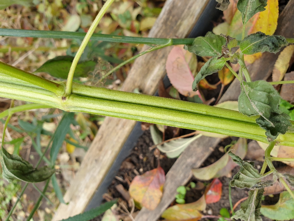 ca. 10 dieser Pflanzen sind wie aus dem NIchts dieses Jahr aufgetaucht. Habe gehofft, dass sie noch aufblühen, aber das kalte Wetter hat sie dahingerafft. Sind ca 1 m hoch geworden, der Stengel ist vierkantig: