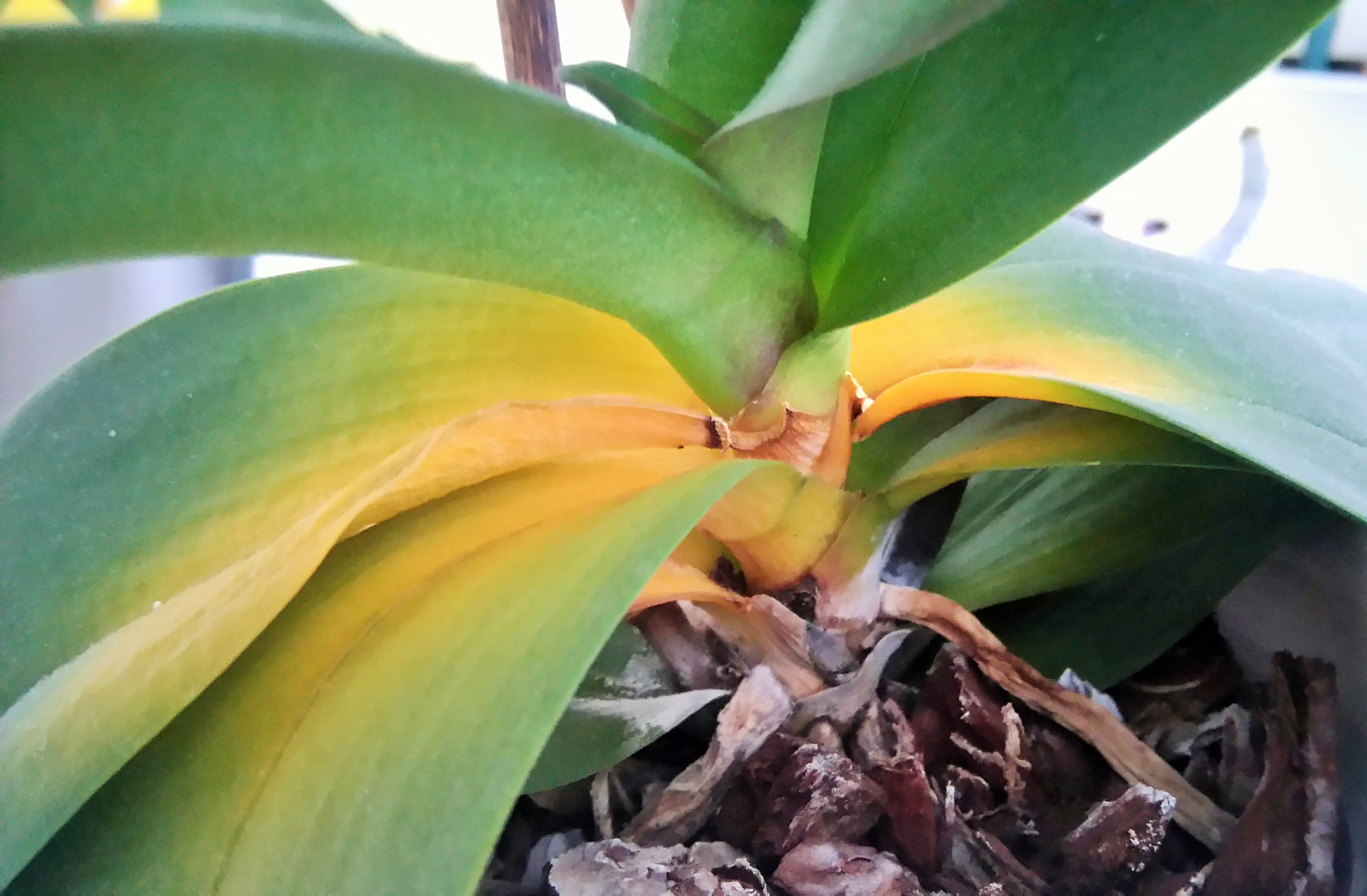 Zuerst dachte ich, es wäre eine Herzfäule, weil unglücklicherweise Wasser ins Herz gelangt ist. Dann hab ich gedacht, meine Orchideen sind generell zu feucht. Deswegen hab ich angenfangen, nur noch selten zu tauchen aber dafür öfters zu sprühen und sehr darauf zu achten, wo Wasser hin kommt.