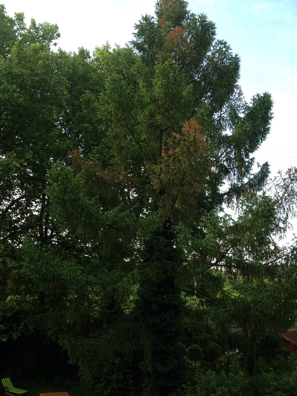 ich habe mich hier im Forum angemeldet, weil ich auf Hilfe für unsere schöne große Lärche hoffe. Sie entwickelt immer mehr große braune Stellen im Blattwerk. Ich habe einmal ein Foto angehängt, ich hoffe ihr könnt das Problem erkennen. Sind das Anzeichen von Borkenkäfern? Oder vielleicht ist der Baum an den Stellen verbrannt? Es wäre tragisch wenn wir die große Lärche fällen müssen, auch weil wir einige Blumen im Garten haben, die dann aufgrund der Sonneneinstrahlung auch eingehen würden.