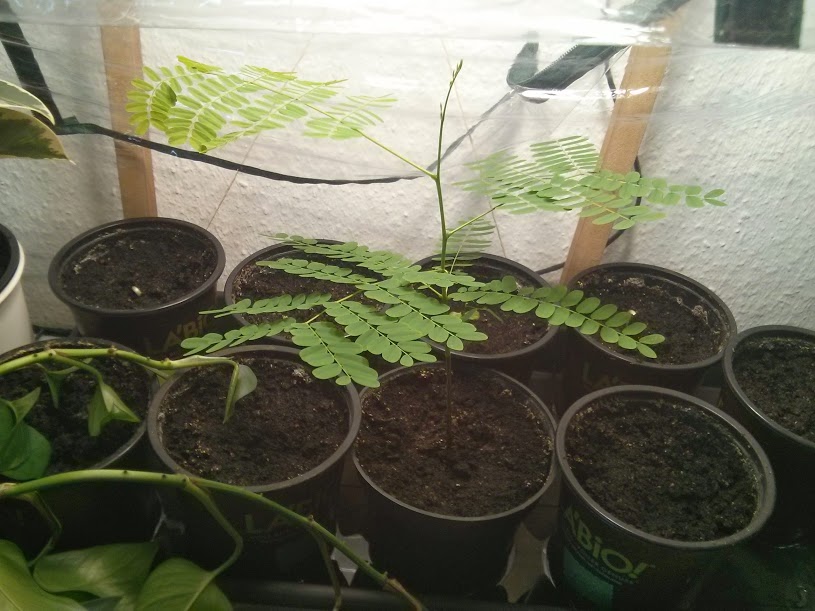 Ich hatte mir Mitte September Samen vom Flammenbaum (delonix regia) von Gran Canaria mitgebracht und in einem Zimmergewächshaus keimen lassen.