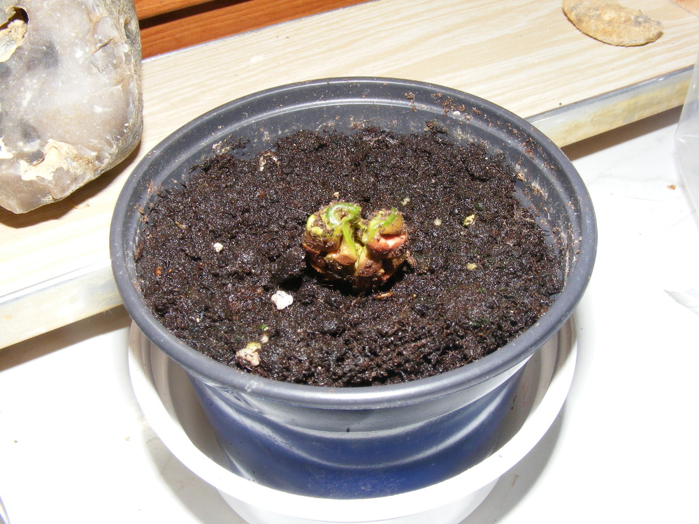 hier wächst amophophallus konjak, leider etwas spät aus dem keller hervorgeholt, weil vergessen. den austireb hat erim keller gemacht, ganz allein, ohne wasser und ohne licht. ich bin recht guter dinge, daß er noch kommt. ich denke, es wird dieses jahr wieder nur ein blatt.