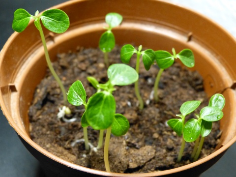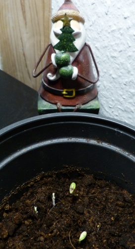 Ich habe ein paar Kumquats gegessen und die Kerne aus Langeweile in einen kleinen Topf gesteckt. Allerdings lagen da noch andere Kerne herum die ich auch irgendwie hinzugegeben habe. Heute hebt sich die oberste Erdschicht und ein paar Pflänzchen erblicken das Tageslicht. Nach Zitrusfrucht-Keimlingen sehen sie mir aber irgendwie nicht so richtig aus. Mals sehen was ich da mal wieder zum Leben erweckt habe