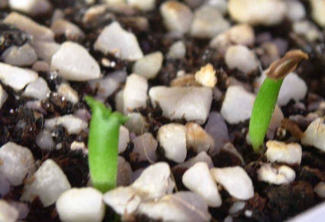 soeben entdeckt: 3 von 6 Plumerias haben bereits ne mini-wurzel! ausgesäht am 8.1. im keimbeutel mit kokohum.