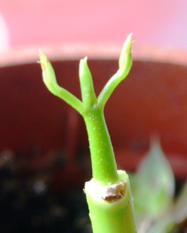 Und Die erste Plumeria traut sich raus. Hab natürlich gebuddelt, und eine 2. hat schon eine 2cm lange dicke Wurzel!