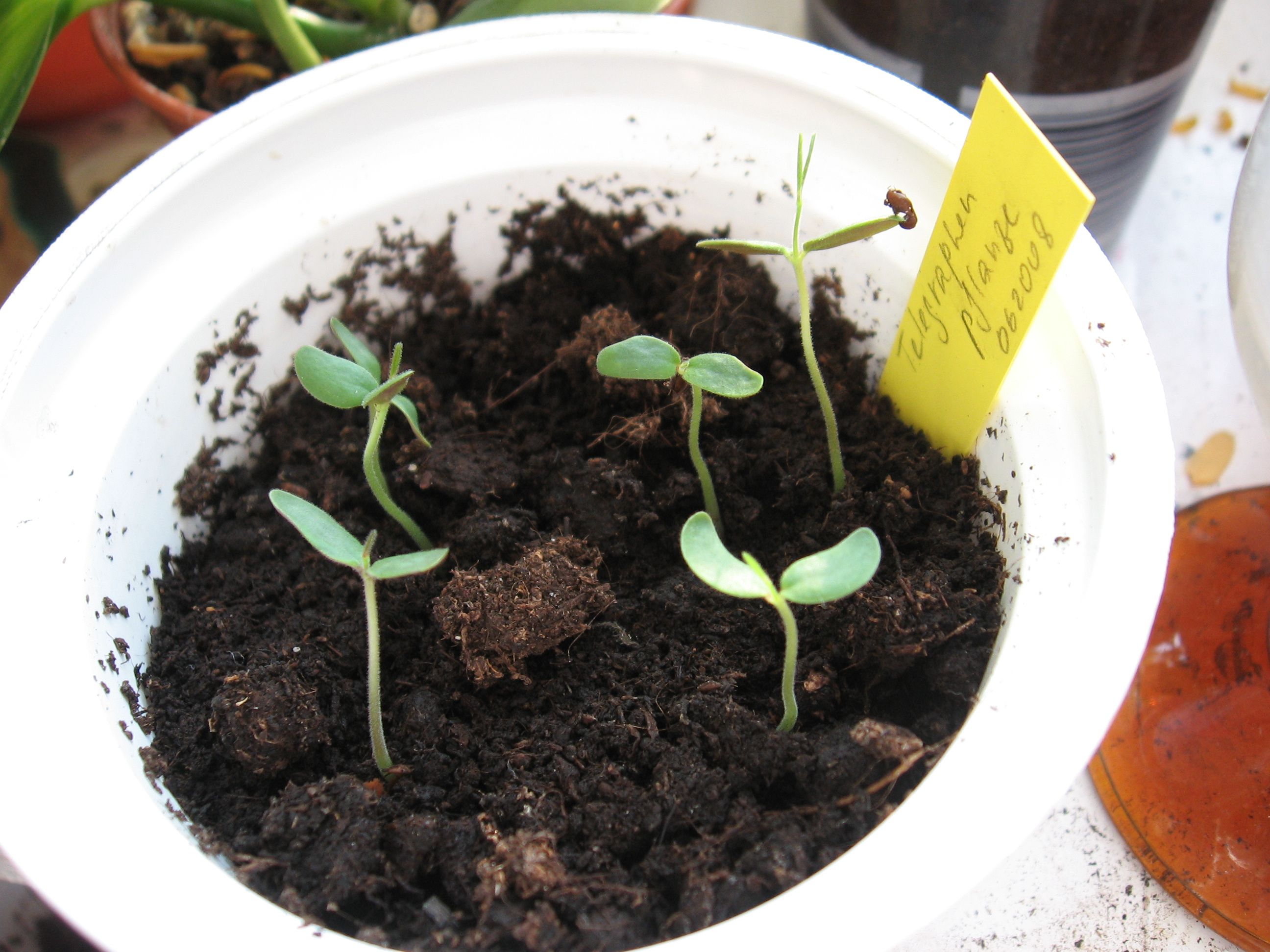 Bei mir keimt eine Passi, aus einem Samenmix, mals ehen, was es für eien ist. Entweder eine weiß blühende, oder aber violett.