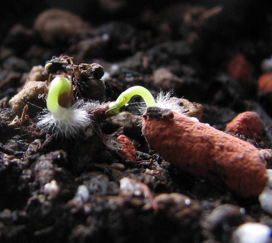 und Abelmoschus moschatus, also "Moschuskörner" - innerhalb von 3 Tagen gekeimt, der längere Keim ist inzwischen 1 cm lang - irre!