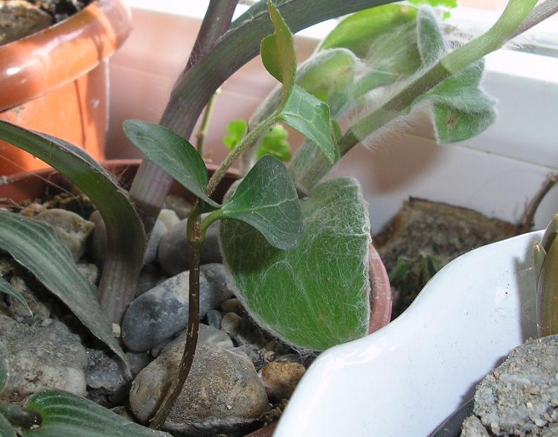 Ich hatte die Samen einfach zu anderen Pflanzen in die Töpfe gesteckt und nun ist ausgerechnet zwischen Tradescantia sillamontana und pallida eines gekeimt *freu*