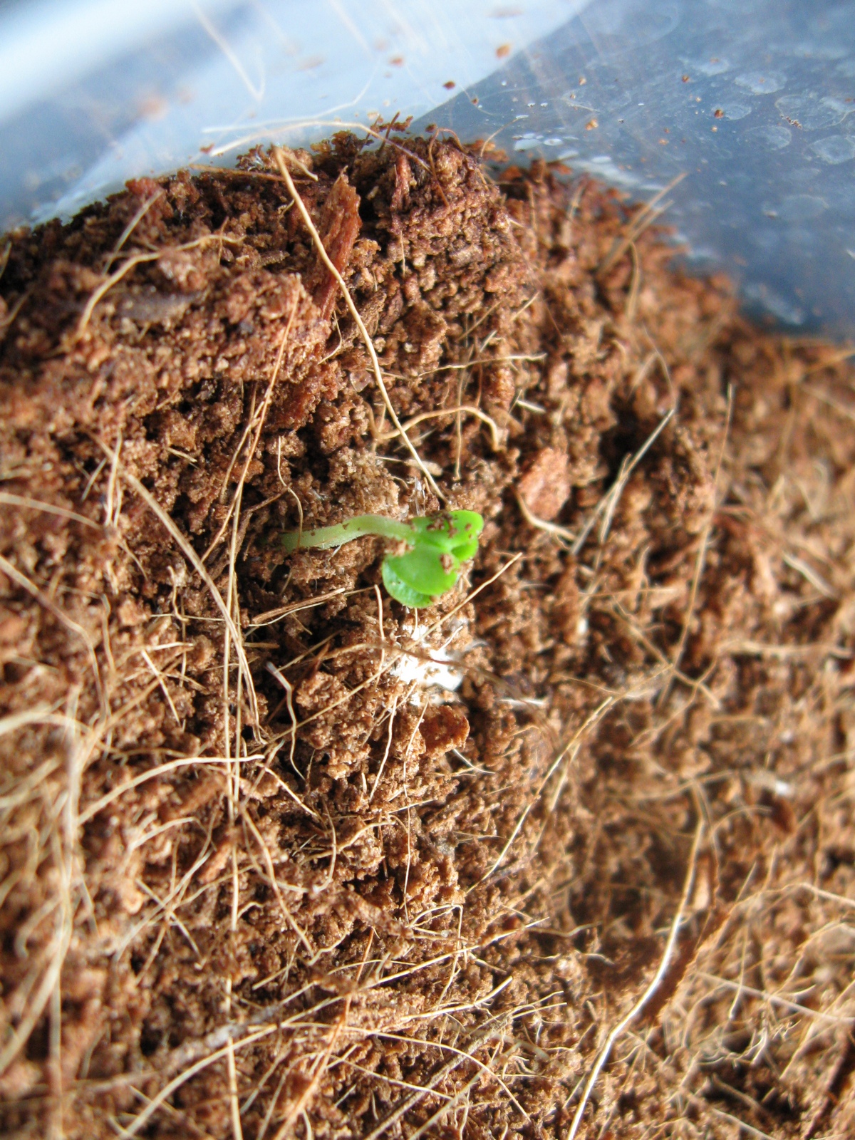 Oben der Keimling von gestern und rechts unten ein behaartes Etwas, welches heute gekeimt ist. Vielleicht kommt einem von euch das bekannt vor