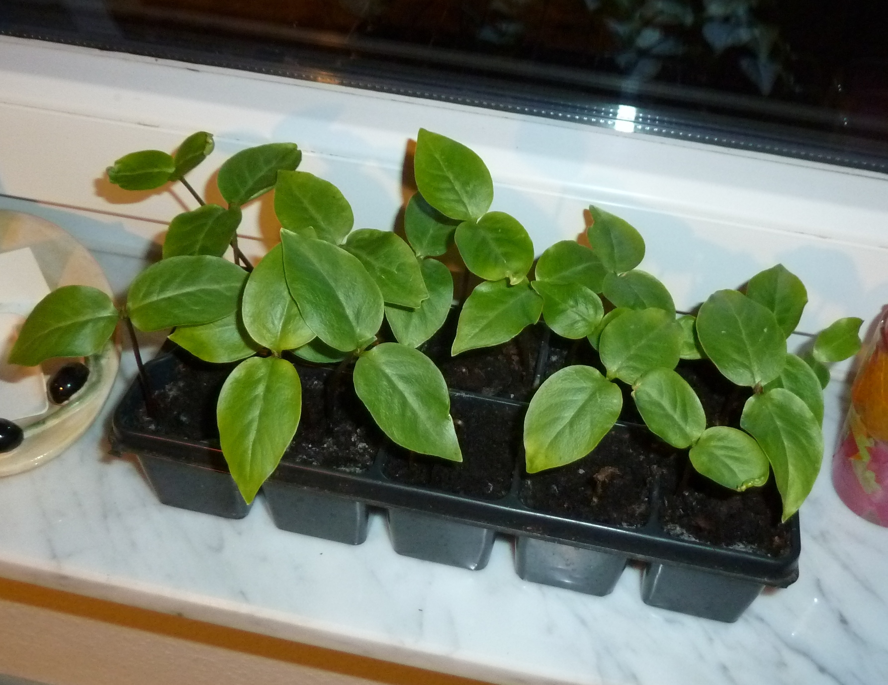 seit Anfang März. Darum weiß ich ja nicht mehr sicher, welche welche sind Ich vermute allerdings, daß es die P. ligularis sind. Die hab ich nämlich aus einer Frucht irgendwann im Jänner zur Seite gelegt. Also ziemlich frisch. Die anderen hab ich bereits ein Jahr. Die haben beim 1. Versuch vergangenes Frühjahr schon nicht gekeimt...