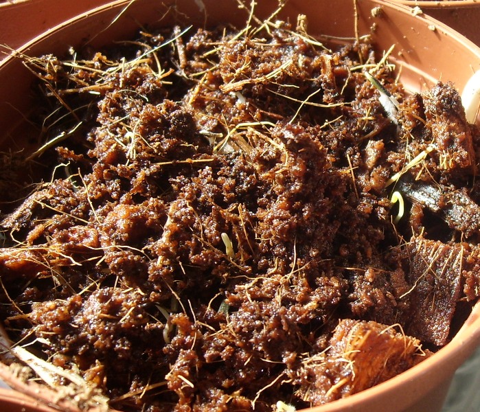 Dafür haben diese gefundenen Samen aus dem Palmengarten inzwischen einen richtigen Teppich gebildet. Natürlich habe ich keine Ahnung, was das ist. Wenn die etwas größer sind, könnt Ihr mir vielleicht bei der Bestimmung helfen.