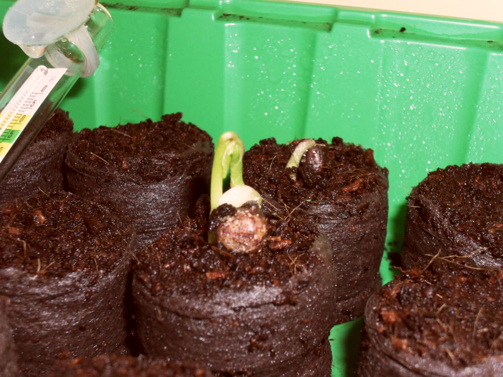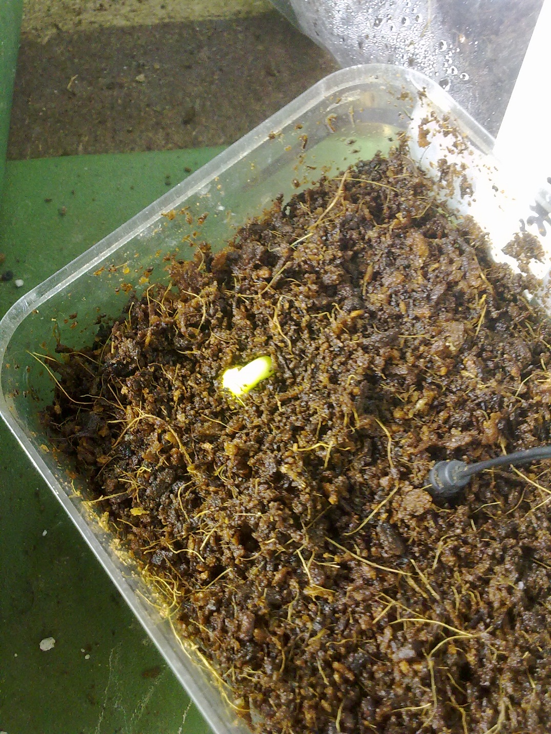 Bei mir keimen Carbobrotus deliciosus (Art Hottentottenfeige). Mal wieder ein Fall, wo ich nicht weiß, wann ich sie ausgesät habe. Die sind seit mindestens 1 Jahr in dem Becher und wollten nicht keimen (wurden von mir als "nicht keimfähig" abgeschrieben), sodass das Substrat zwischenzeitlich mal weggestellt wurde bzw. für andere Samen verwendet wurde.