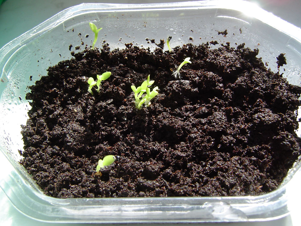 Unter die Erde gekommen sind ein paar Mandarinenkerne aus'm Urlaub (Anfang 2010). Zumindest einer keimt nach ca. 10 Wochen Wartezeit - wohlgemerkt nach 3 Jahren Lagerzeit! Der Rest sieht auch gut aus. Bis jetzt gammelt noch nichts - mal schauen, wie viele sich da noch zeigen werden.