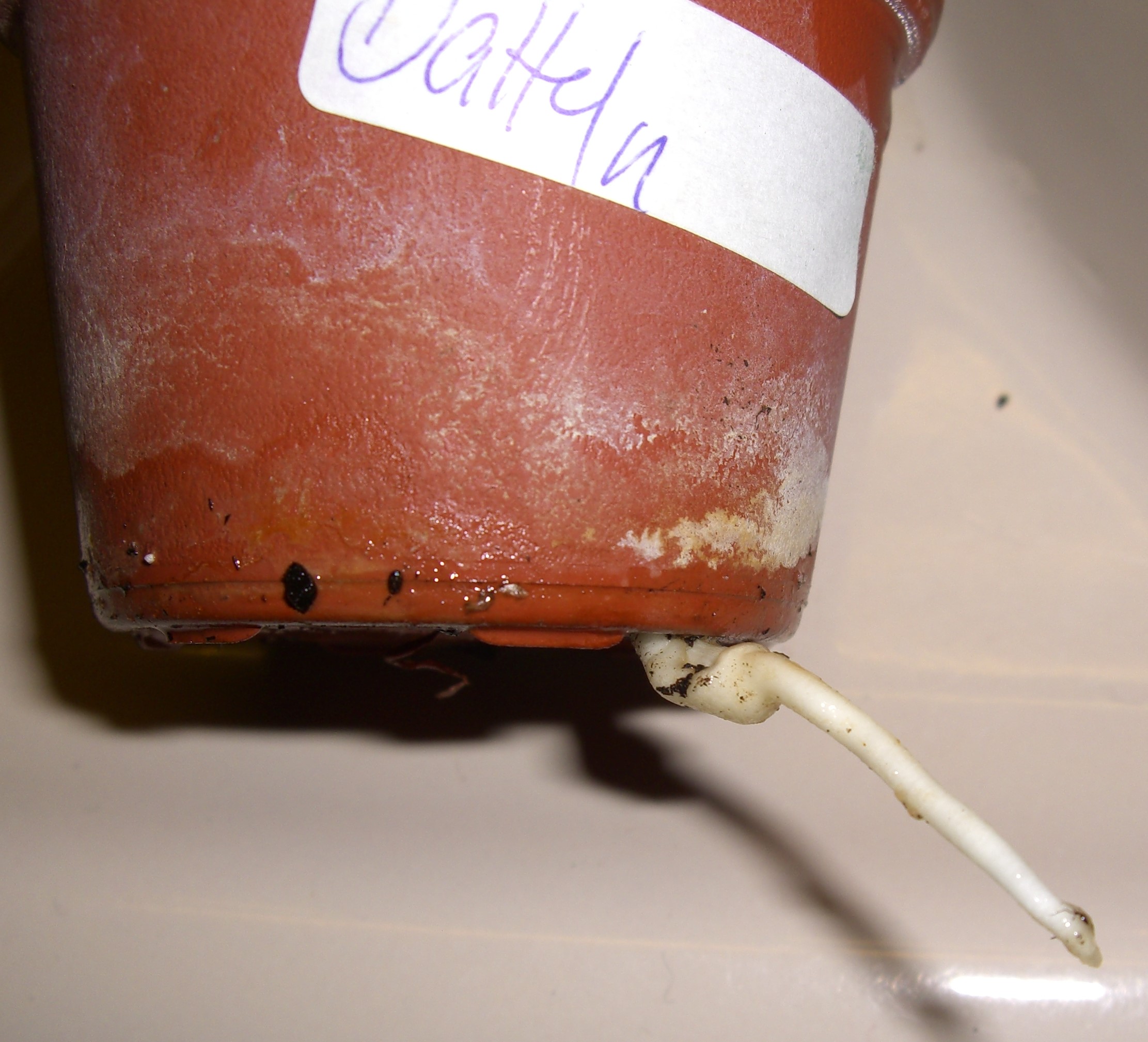 Eben habe ich eine Wurzel bei meiner Dattel entdeckt