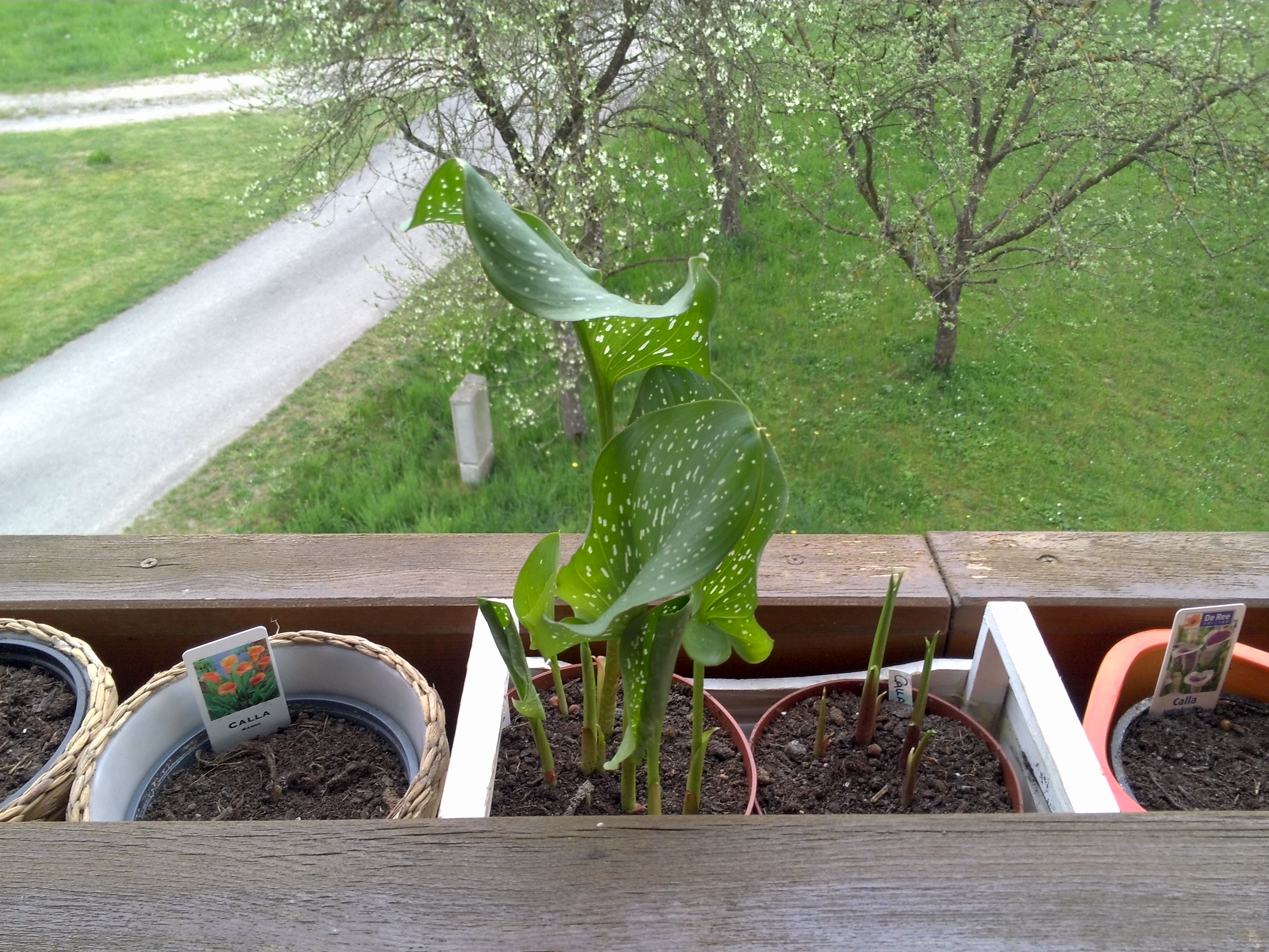 Meine Calla Knollen hab ich recht zeitig in Erde gesteckt und die Grösste sieht nun so aus...[attachment=0]1396714799790.jpg[/attachment]