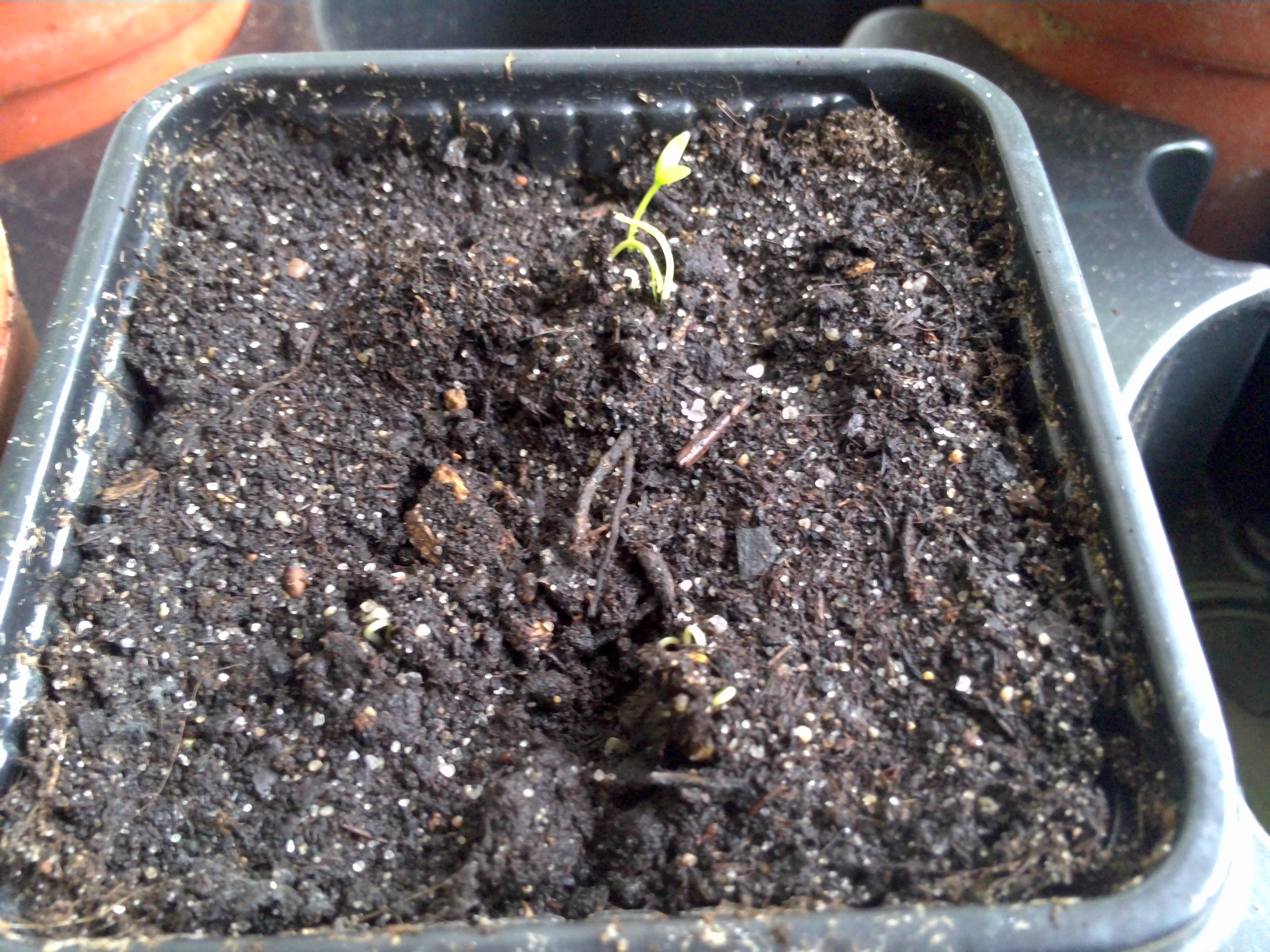 habe vor knapp 3 Wochen mal alles unter die Erde gebracht was länger als 3 Jahre rumlag. Bisher gekeimt sind: