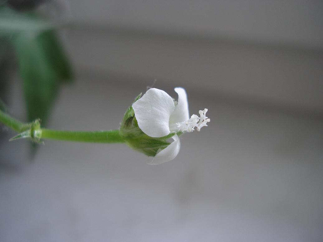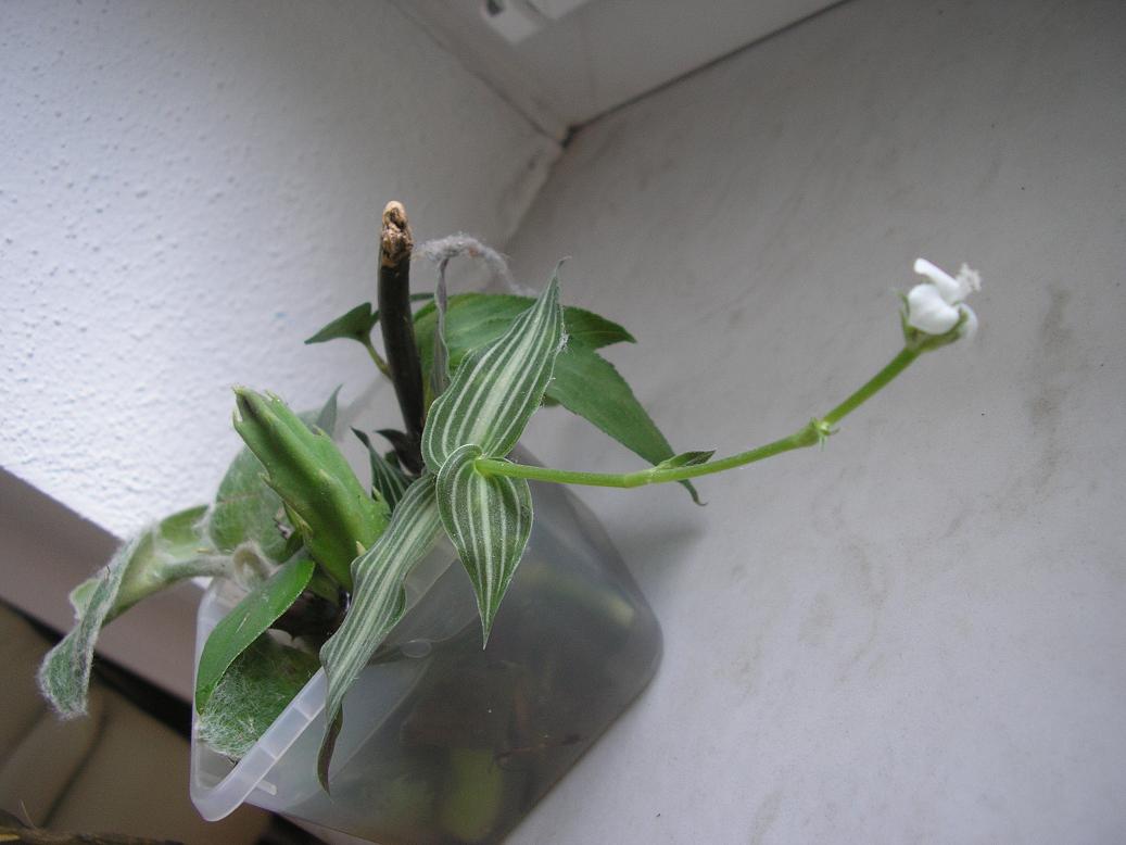 Die Blüten sind klein und weiß und an langen Stielen. Im Vergleich zu tardescantia pallida ist sie sehr zierlich