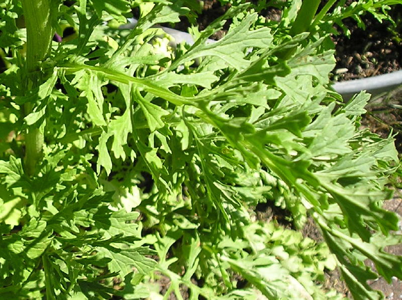 wenn die so weisse blüten bekommt, die aussehen wie mageritten, könnte das mutterkraut sein, das müffelt, wenn man die blätter zerreibt