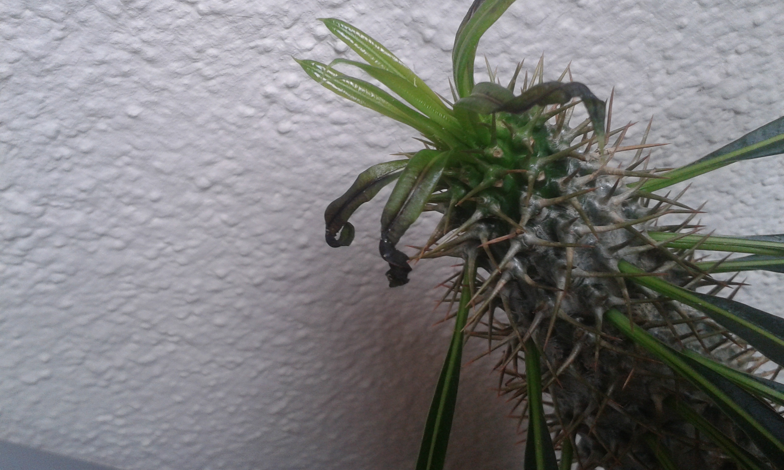 Junge Blätter scheinen von der Mitte ausgehend abzusterben, es kommen aber trotzdem immer welche nach...