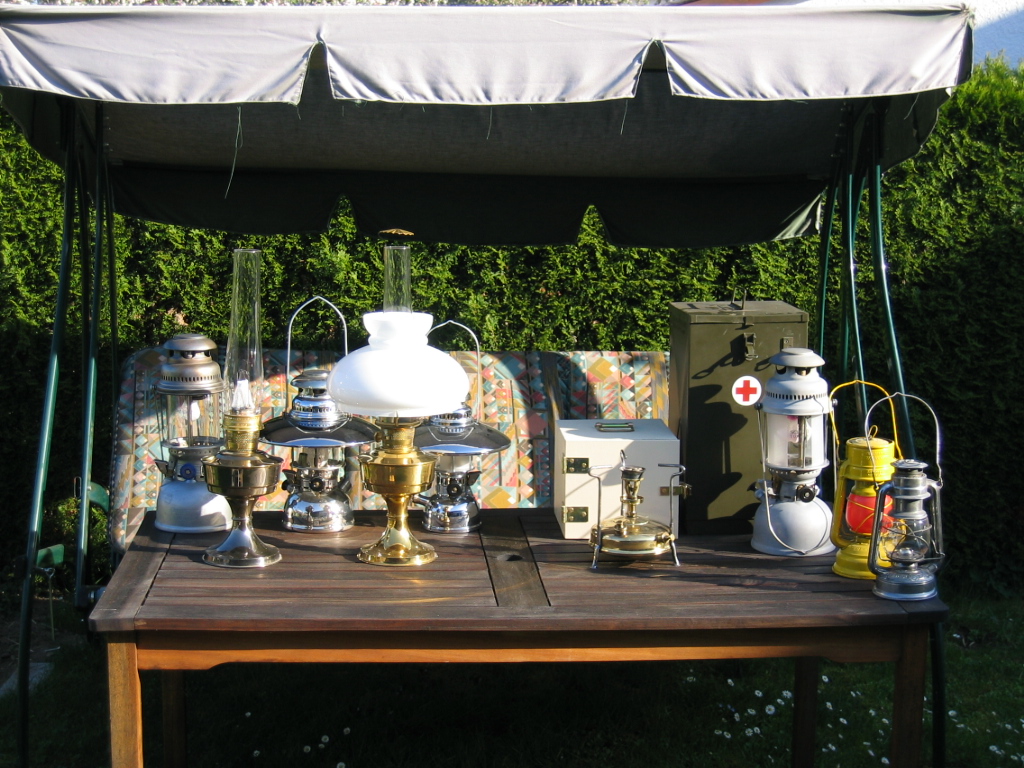 meinereiner sammelt Petroleumlampen, mit denen er den Garten ausleuchten kann..