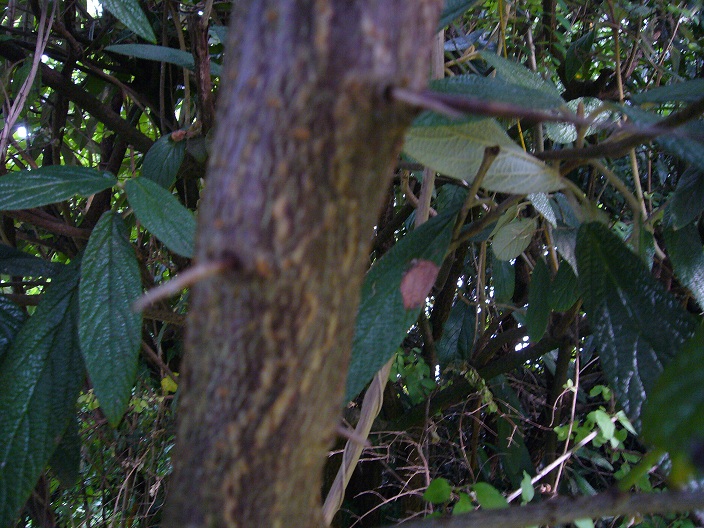 der Runzelblättriger Schneeball der wächst dahinter der Stamm mit den Dornen im Vordergrund gehört dazu