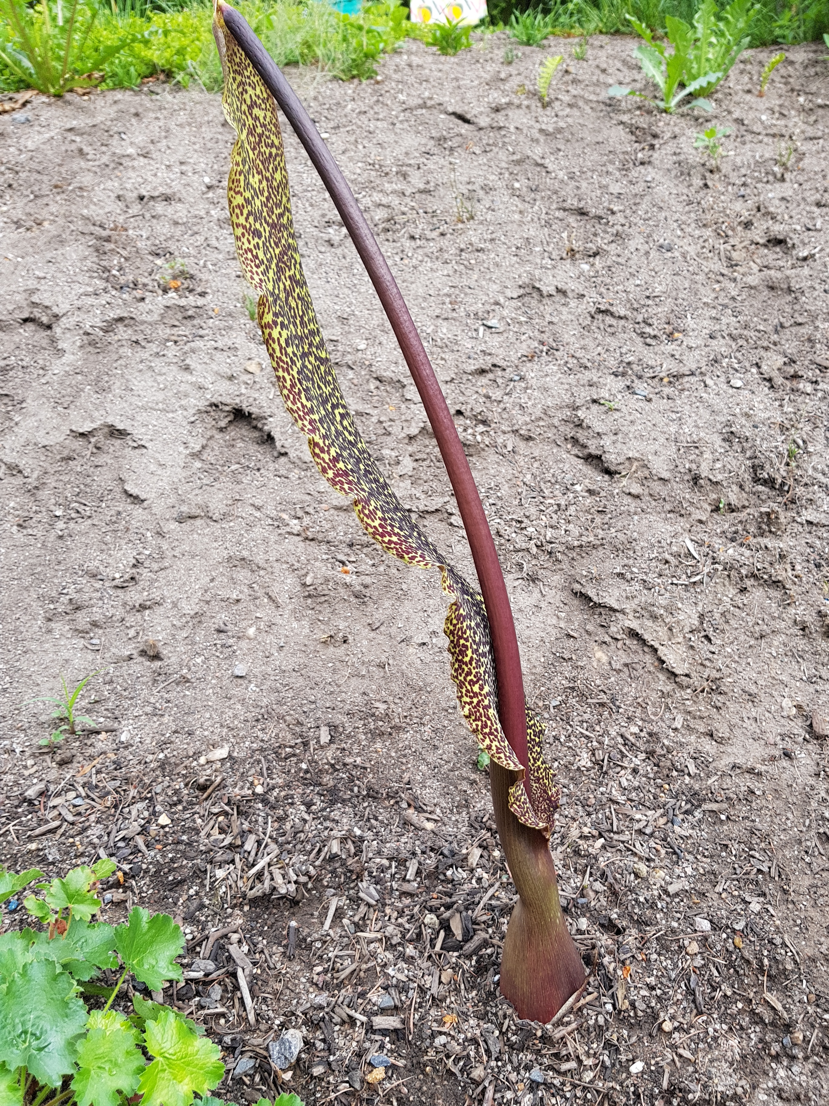 Letztes Jahr war sie zuerst aus der Erde gestossen aber war noch nicht so groß wie dieses Jahr.hatte dann im August auch palmartige grüne Blätter.