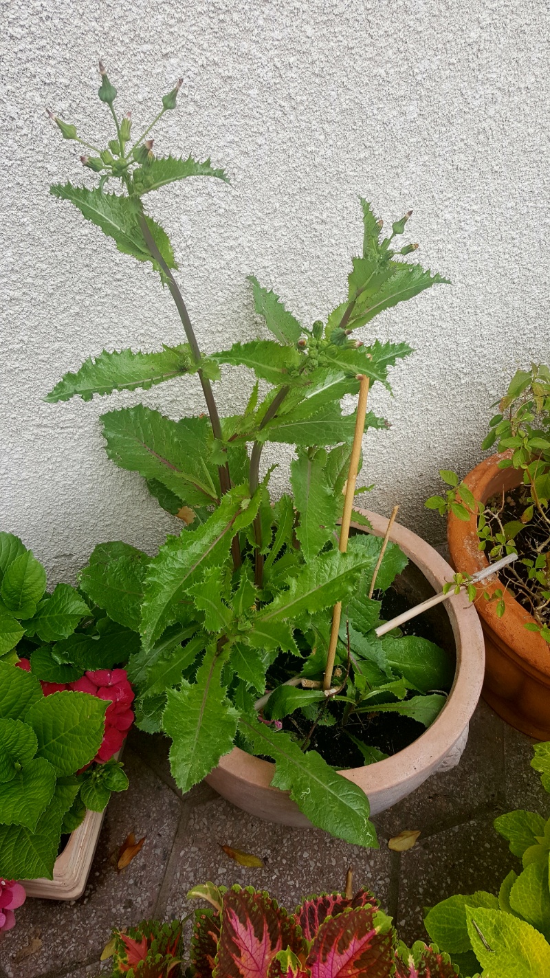 Was auch immer da mal drin wuchs, hat das Winterquartier leider nicht überlebt. Stattdessen wächst da fröhlich dieses Pflänzchen vor sich hin und verbreitet sich auch fleißig über die angrenzenden Töpfe... raus kommt es also auf jeden Fall, aber was zum Kuckuck ist es?