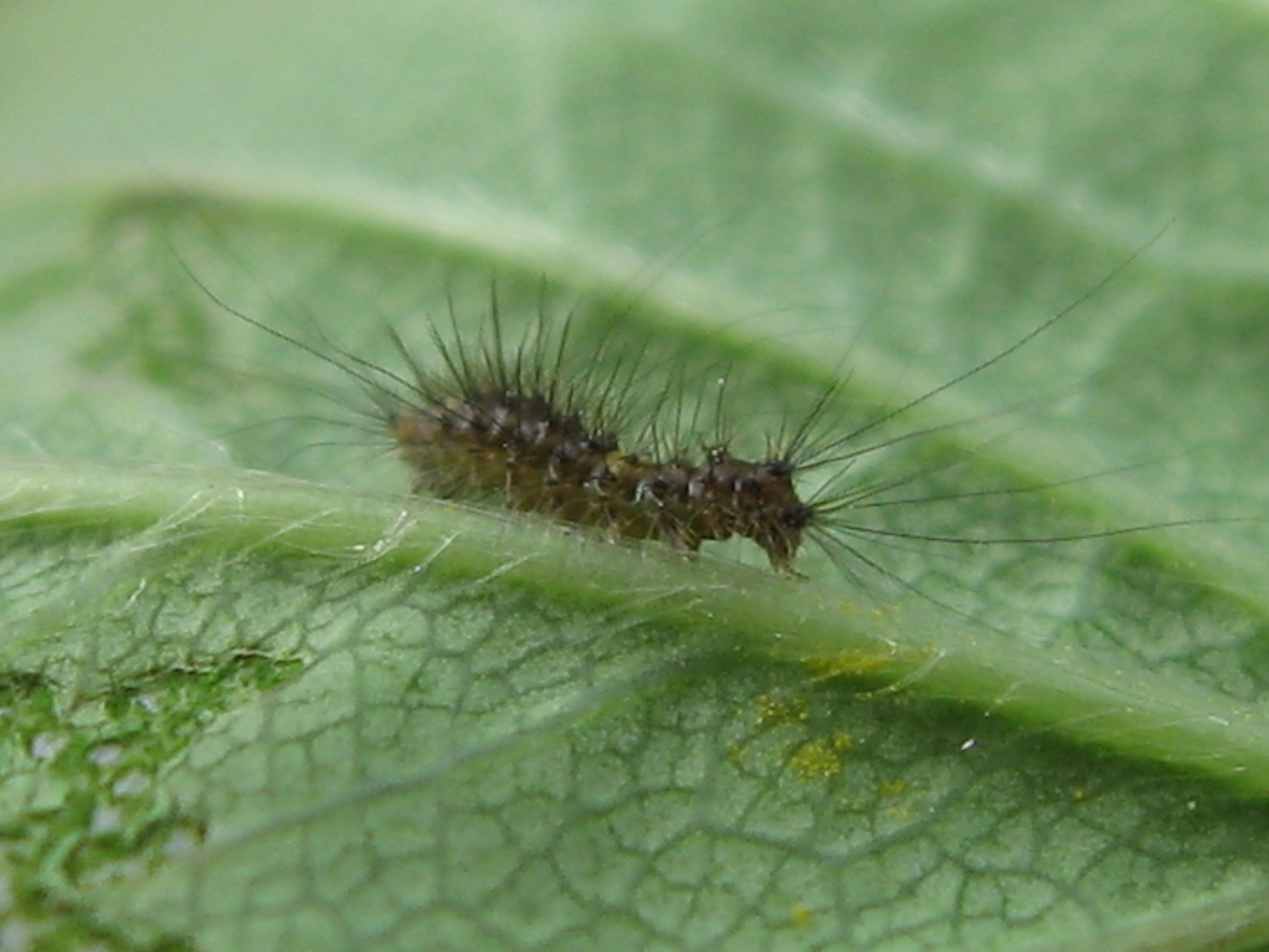 ich schließ mich mal an, wenns nix ausmacht. dieses mini-räupchen wohnt auf meinen erdbeeren, habs heute entdeckt, und finds total putzig, weil es so winzig ist, und so coole haare hat .