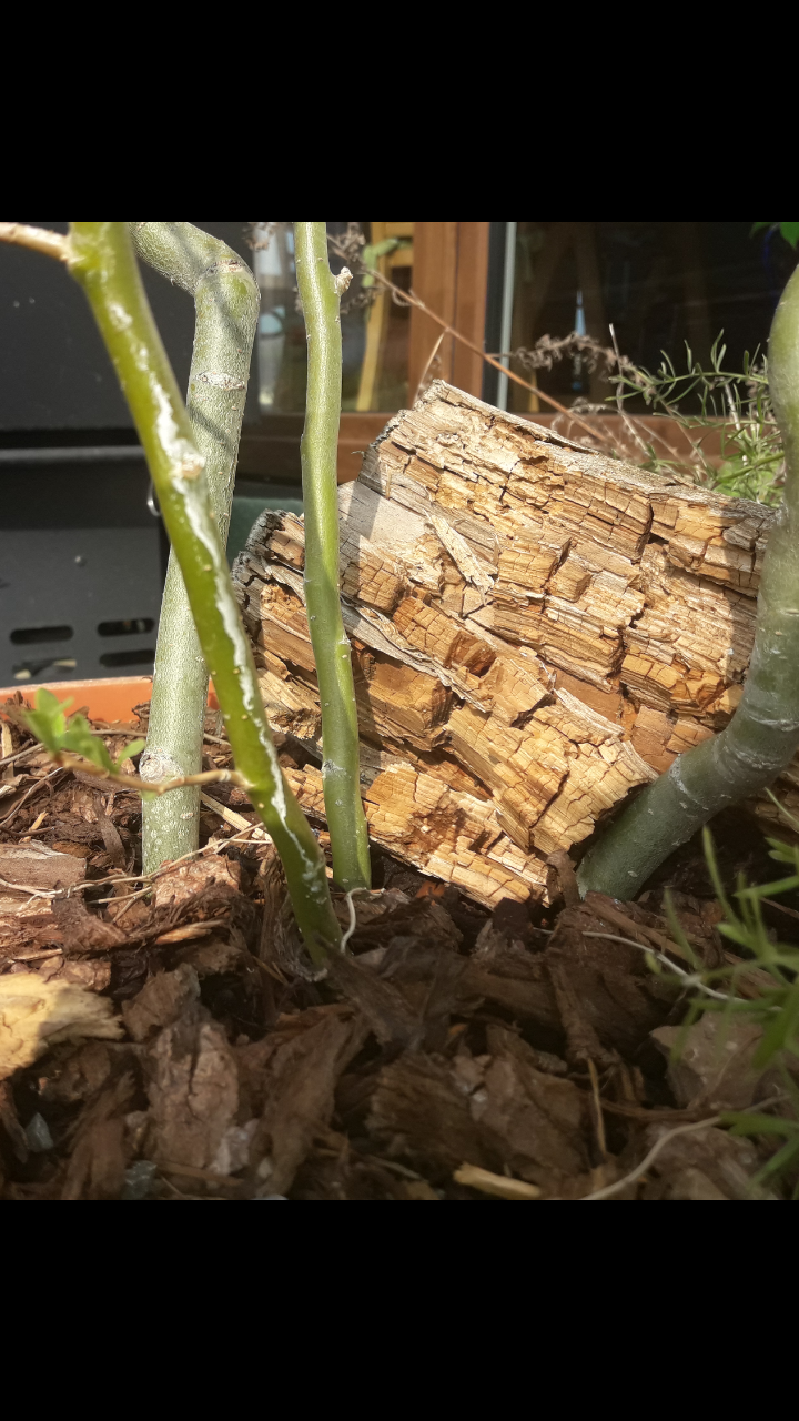 Vor einigen Tagen bemerkte ich zum ersten Mal diese weißen Spuren. Erst dachte ich, es sei die Rinde, die vielleicht aufgeplatzt oder etwas abgeschält sei.