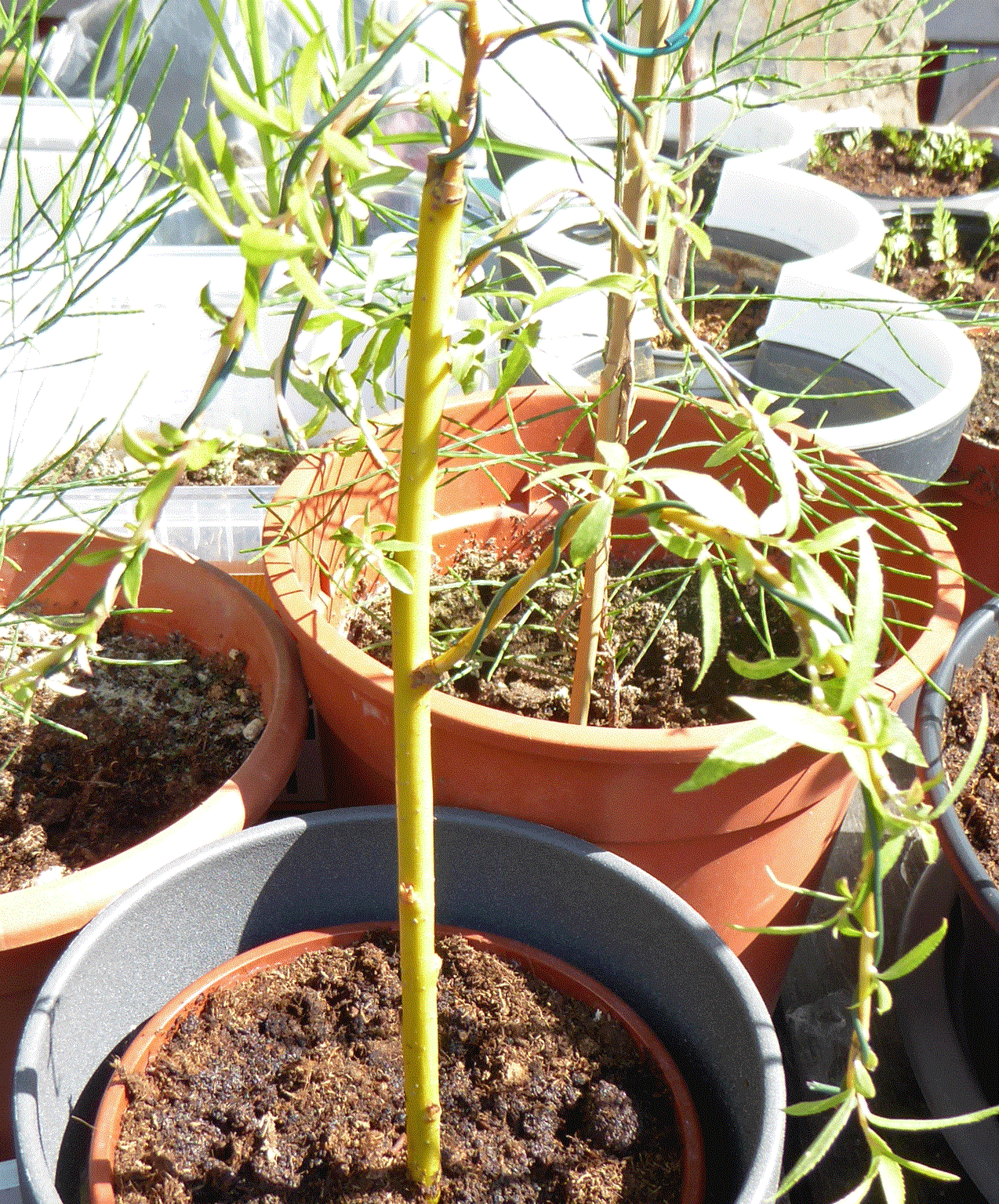 Die Alba Tristis stand im Kübel den Winter über im Garten und treibt nun kräftig wieder aus...