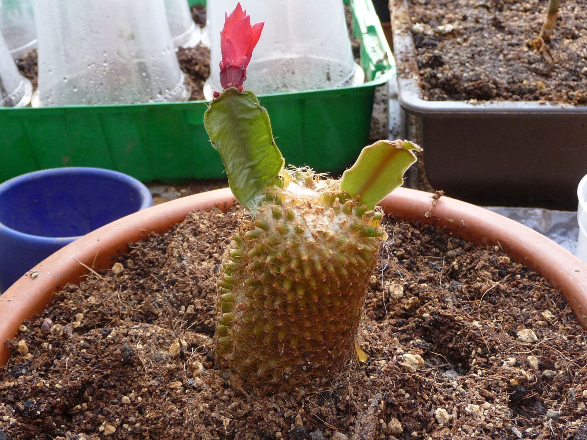 ich habe mal was probiert. Die Schlumberga mit der Blühte ist jetzt 4 Wochen alt und die Blühte hat sich geöffnet. Die ohne Blühte ist eine Woche alt.