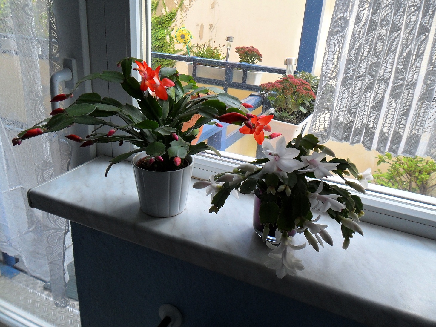 Jaaaa, genau, Sanne hat Recht: ich glaube, das ist exakt das gleiche Regal! Ich hab doch nur einen Wohnraum mit 2 zwar großen Fenstern, aber leider sehr schmalen Fensterbänken Und diese Regale (ich hab an jedem Fenster eins, aber sie könnten breiter sein ) sind sehr genial, weil man nix bohren muss Sowas kann ich nicht gut , außerdem sind Wände und Decke hier selbst für Bohrprofis eine heftige Herausforderung, und man möchte ja auch nicht, dass die Blümchen abstürzen, weil es dann nicht hält. Abgesehen davon sind sie mega-preiswert, ich glaube, ich habe ca. 15 € pro Stück bezahlt und konnte alles allein transportieren und basteln. Einziger kleiner Nachteil: sie haben nur jeweils 3 Böden, so einer mehr wäre auch nicht schlecht gewesen Foto hat sich jetzt erübrigt, oder Petra?