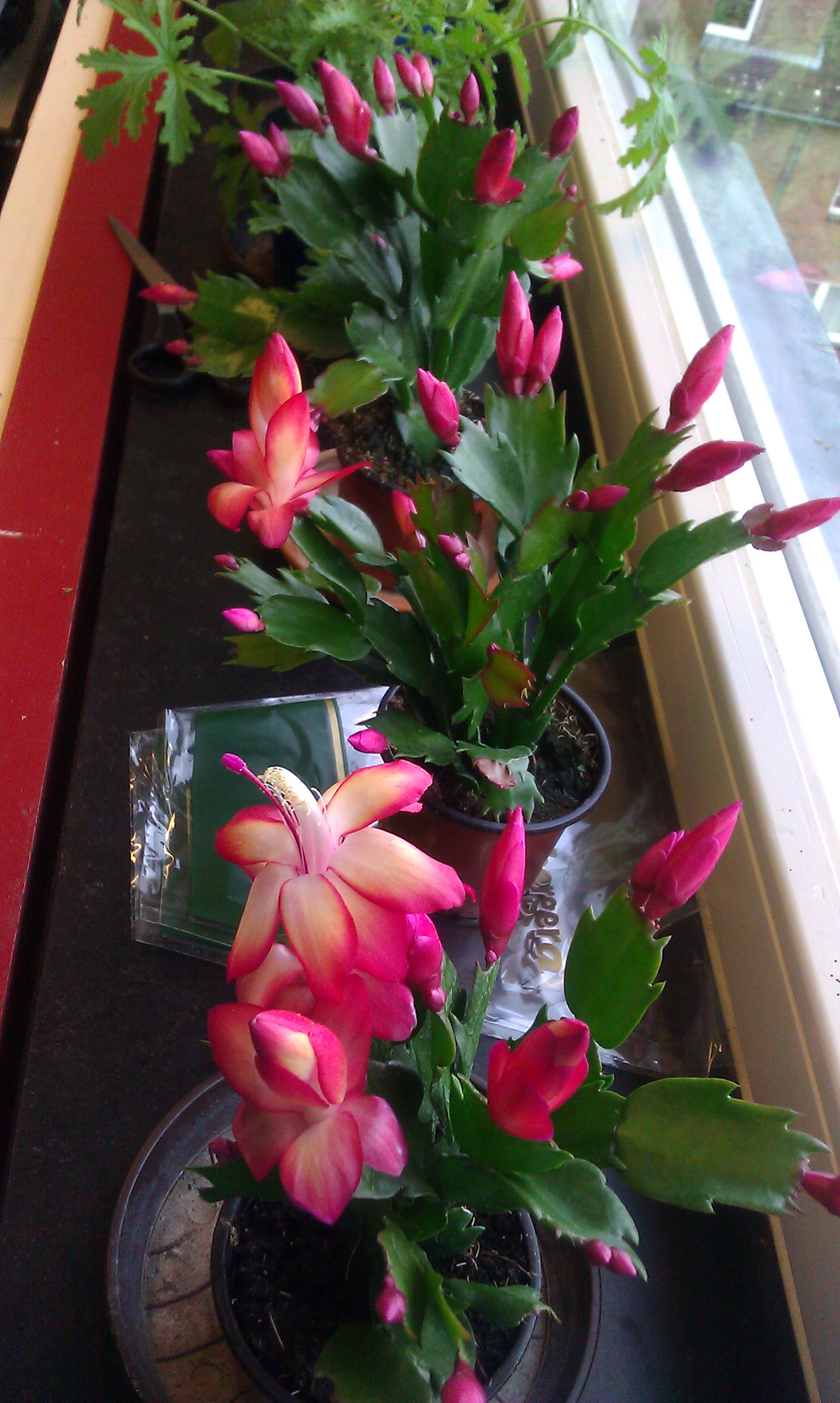 Ich hatte alle Sämlinge aus dem Aussaatgefäß auf 3 verschiedene Töpfe aufgeteilt (ca. 10 oder etwas mehr pro Topf). Interessanterweise haben sich diese 3 Gruppen unterschiedlich entwickelt und zwar wohl aufgrund des Standorts und auch der Gefäßwahl. Auf der Fensterbank stand eine Gruppe im Kunststofftopf und eine im Tontopf. Die 3. Gruppe stand im Kunststofftopf auf einem Pflanzenregal nicht ganz so dicht am Fenster. Die im Kunststofftopf am Fenster (also am hellsten Standort) haben sich schön kräftig entwickelt, das sind die, die jetzt schon blühen. Wuchsmäßig am größten wurden die, die etwas dunkler standen, die haben aber auch Knospen und werden hoffentlich noch blühen, nur später. Die Sämlinge im Tontopf wuchsen am spärlichsten und werden dieses Jahr garantiert noch nicht blühen. Ich vermute - und das beantwortet vielleicht Deine Frage nach dem Gießen auch so ein bisschen - dass der Wurzelballen im Tontopf stärker austrocknet. Ich habe sie dann irgendwann in einen Kunststofftopf umgepflanzt, woraufhin sie innerhalb kürzester Zeit förmlich explodierten und extrem "erholt" aussahen. Ich gieße meine Schlumbis eher wenig, auch die kleinen, aber bei den Jungpflanzen scheint es doch was auszumachen, wenn sie allzu wenig Feuchtigkeit haben. In den ersten Monaten halte ich sie auch unter einer Kunststoffabdeckung.