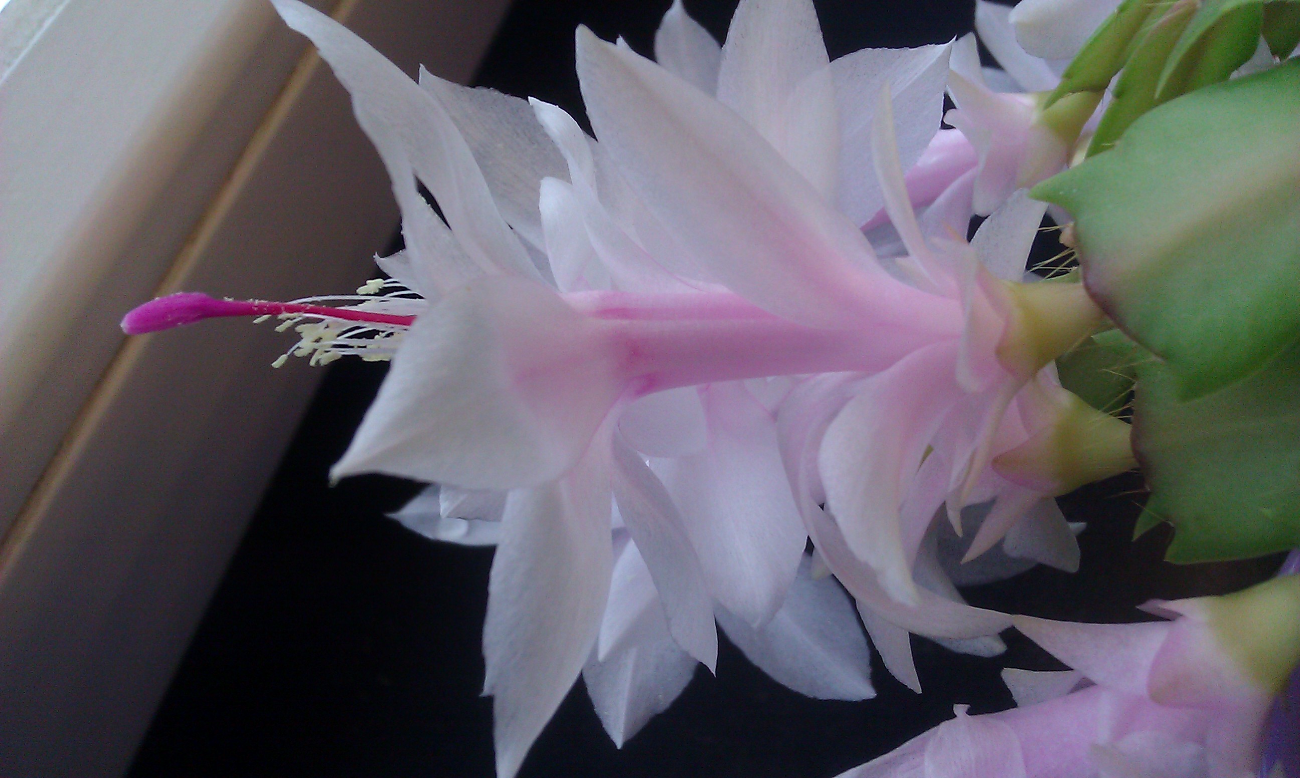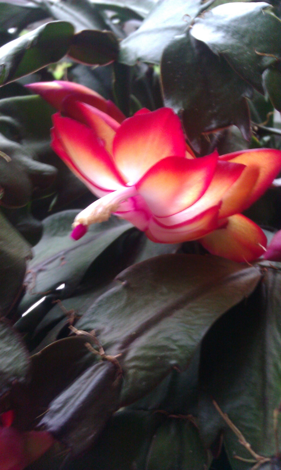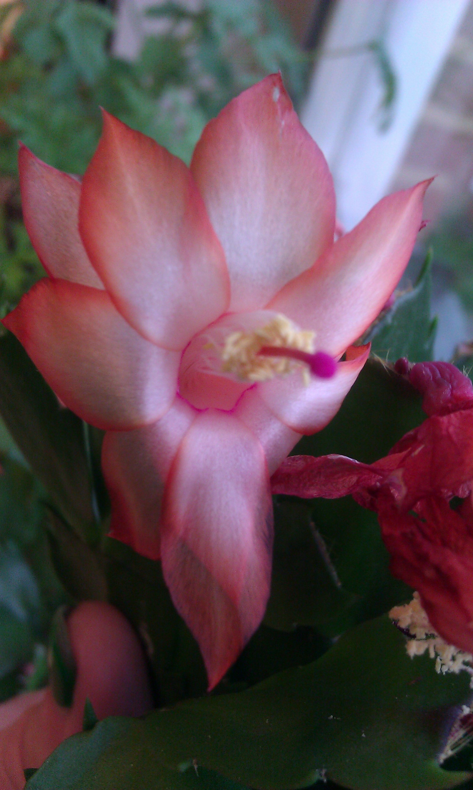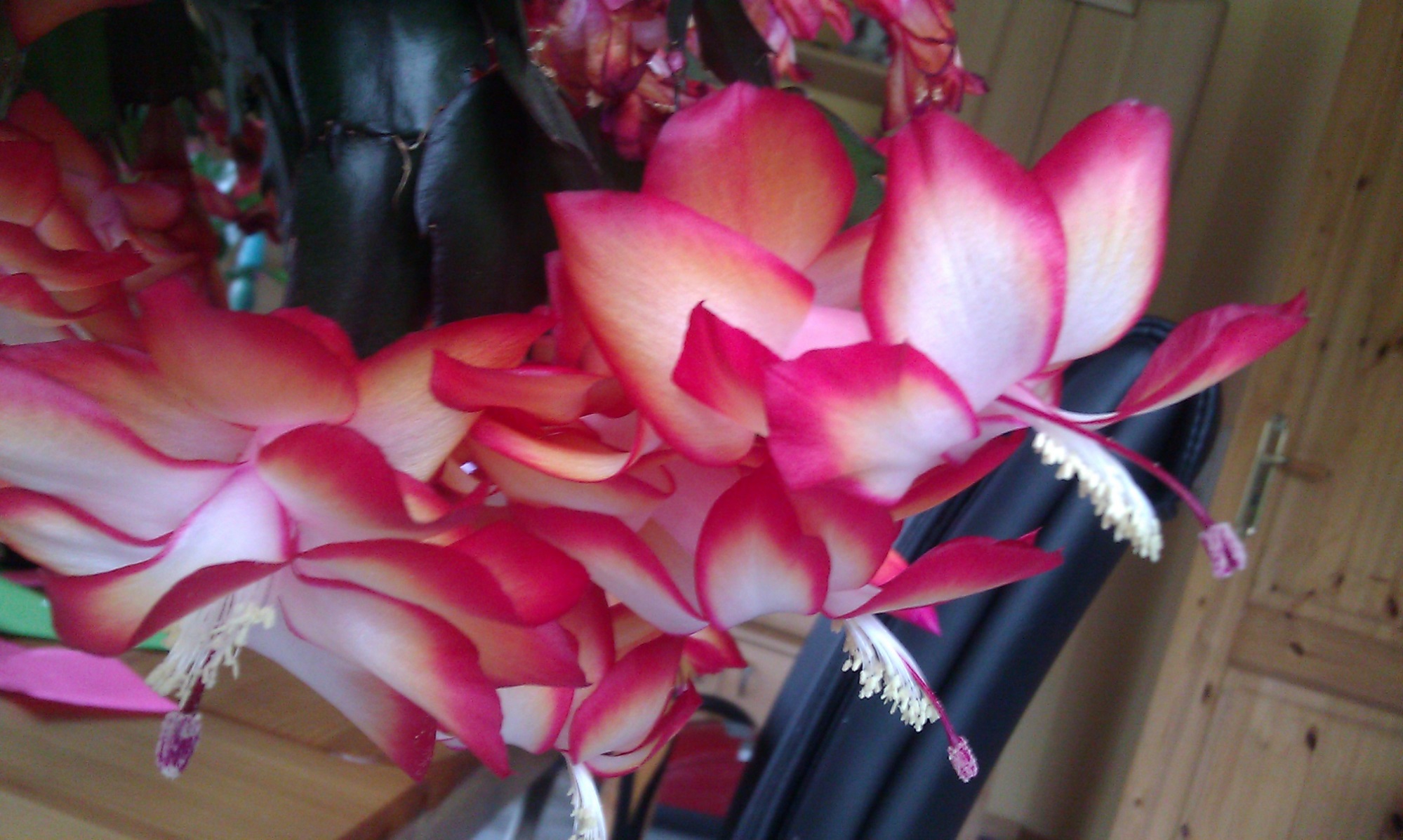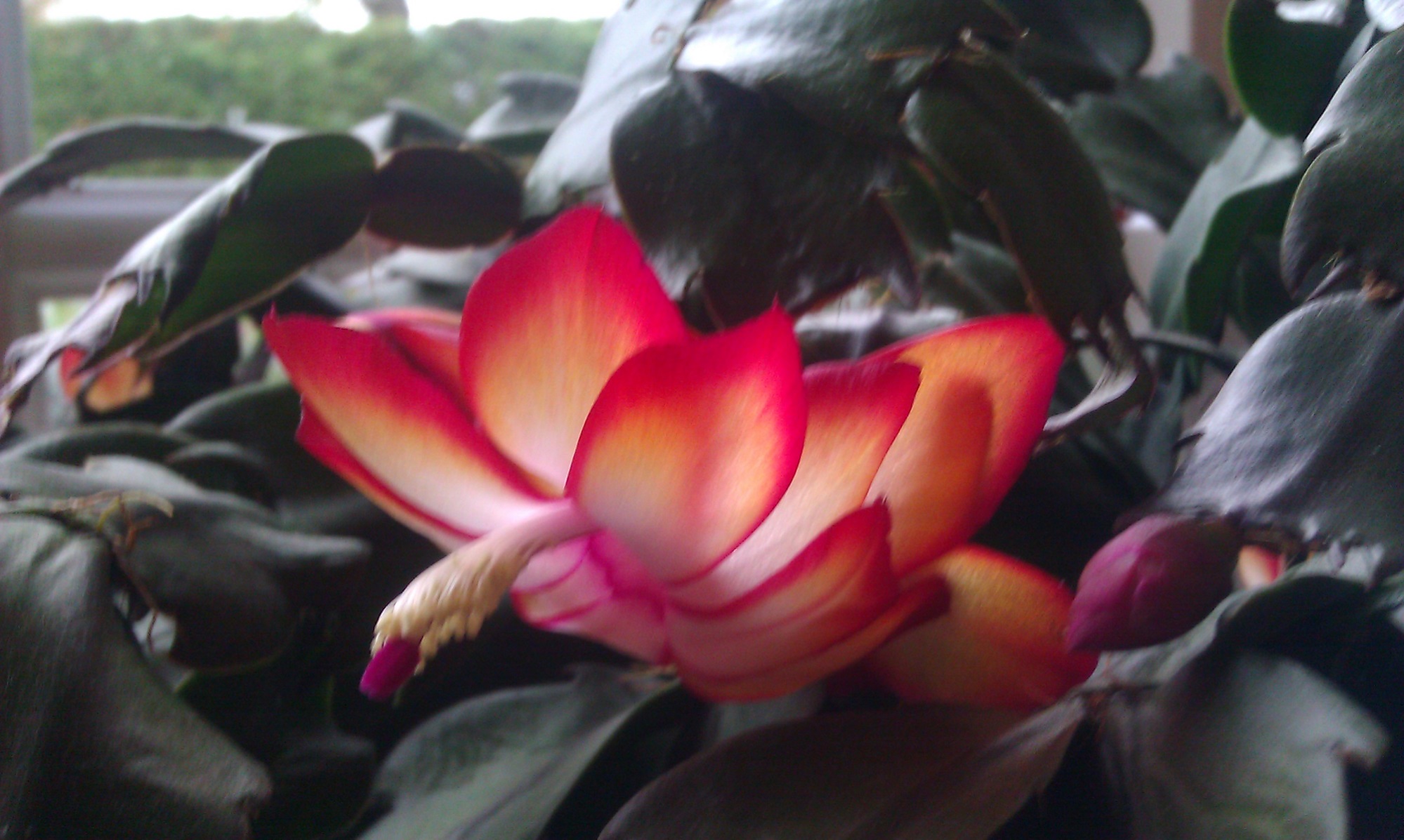 Komm ich vorhin nach Hause und muss feststellen, dass meine Jalousie runtergeknallt ist - und wohin? Klar - in die Schlumbischale Leider sind einige (reichlich) Knospen dabei abgefallen , aber ein paar sind auch noch dran