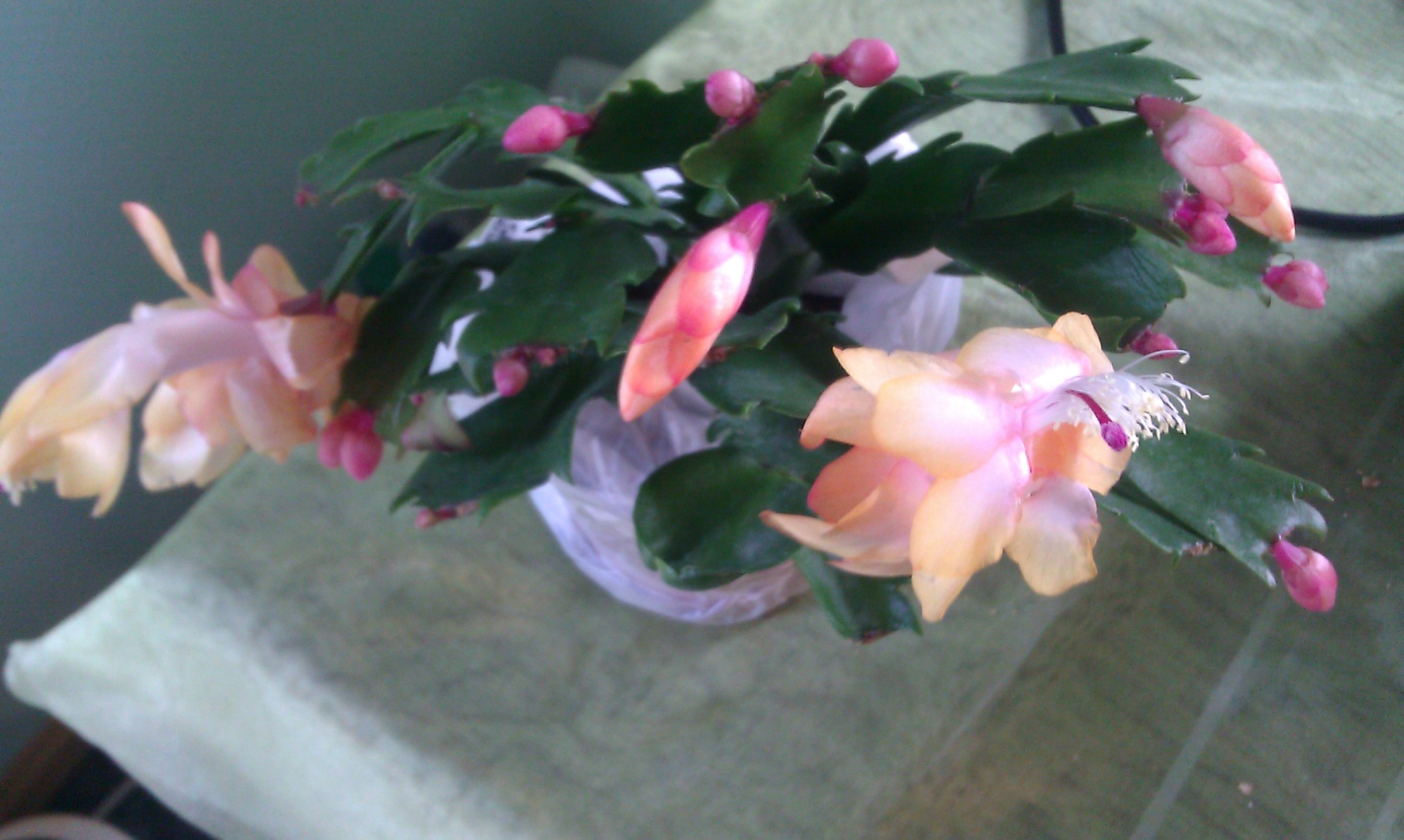 Komm ich vorhin nach Hause und muss feststellen, dass meine Jalousie runtergeknallt ist - und wohin? Klar - in die Schlumbischale Leider sind einige (reichlich) Knospen dabei abgefallen , aber ein paar sind auch noch dran