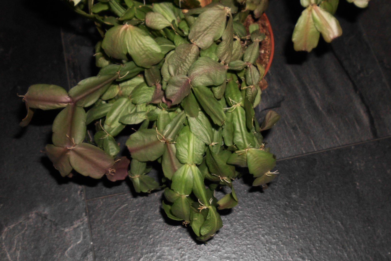 Rot, Pink und ? haben dann nach wenigen Tagen sämtliche Knospen abgeworfen und der Weiße, der hat fast alle Glieder abgeworfen, nur ein Stengel ist stehen geblieben und da ist jetzt eine ganz winzige Knospe dran. Die abgeworfenen Glieder hatte ich auf dem Topf liegen lassen, aber sie haben keine Wurzeln gebildet.