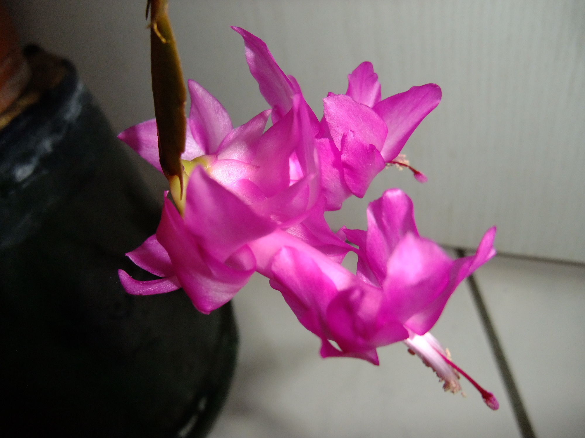 Wir hatten einen uralten Weihnachtskaktus im Treppenhaus, bei dem wusste schon keiner mehr vom wem er eigentlich war. Vermutlich von einer längst verstorbenen Vormieterin, kleiner Topf, steinharte Blumenerde, gegossen wenn gerademal jemand daran dachte und dann waren es meist zwei Parteien gleichzeitig. Aber er hat jedes Jahr geblüht als sei es sein letztes Jahr (was bei der Pflege auch durchaus hätte sein können)
