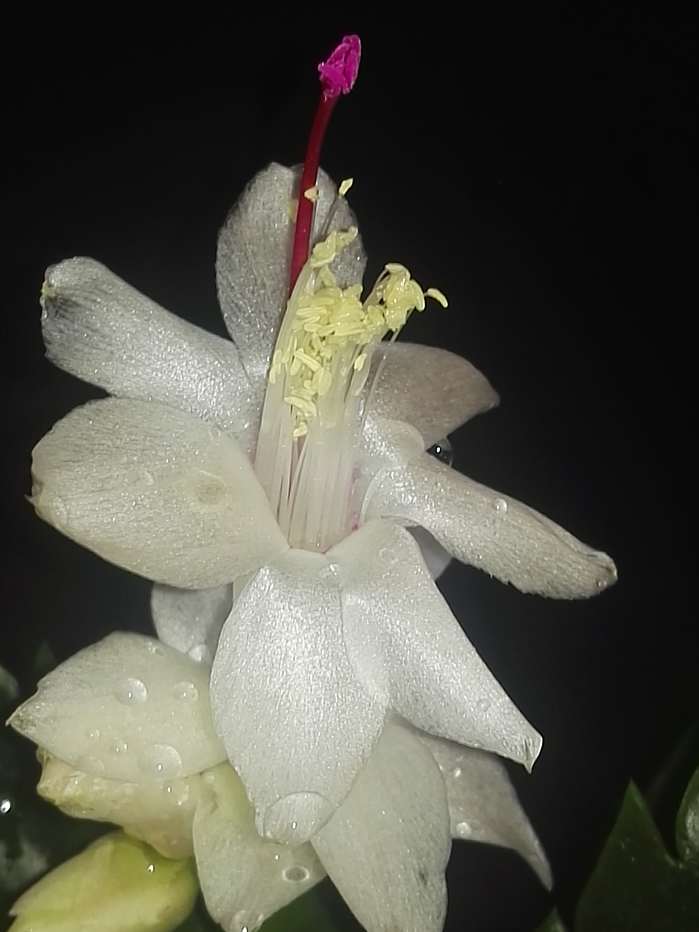 Meine Schlumbis sind nun schon durch mit der Blüte, nur der eine hat noch ein paar letzte offen, aber die werden sicher auch in den nächsten Tagen abfallen. Meine Neuerwerbung hab ich, kaum dass er ein bisschen mit der Blüte nachließ, umgetopft. Er steht jetzt auch im Orchideenere-Blähton-Gemisch wie alle anderen und wird getaucht.