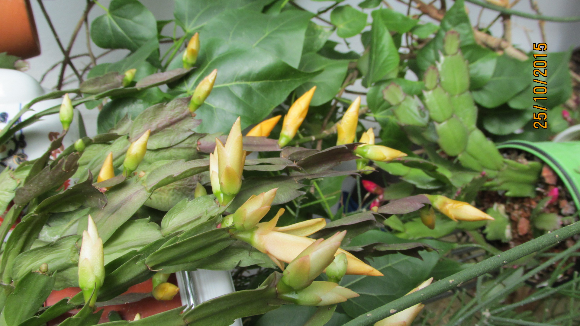 Die größeren Schlumbis stehen aus Platzgründen schon lange wieder im Wohnzimmer, da tut sich nix mit Blütenansatz.