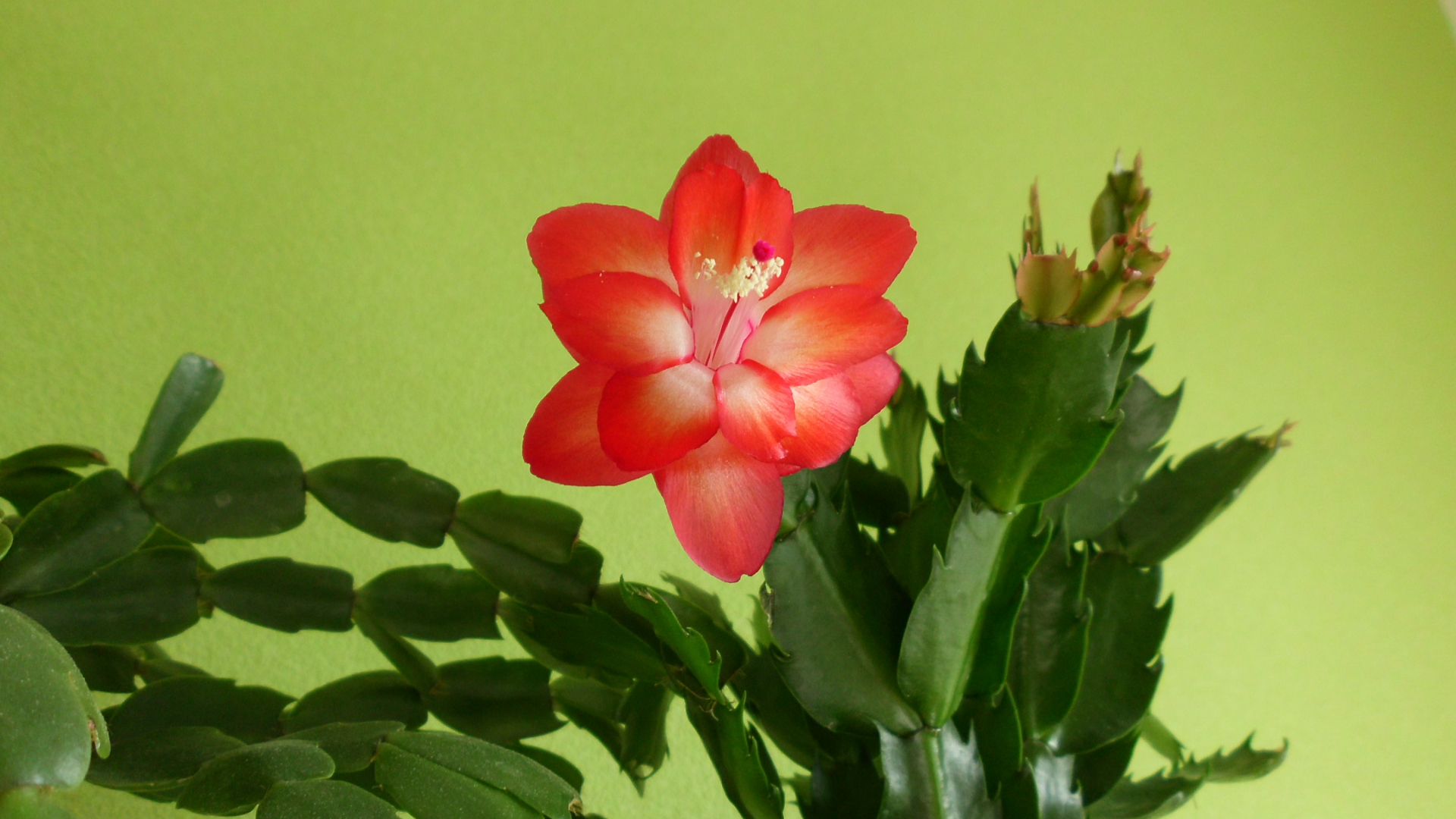 Allerdings gefällt mir diese Blüte ausgesprochen gut, auch wenn sie nicht den meisten Bildern im Netz entspricht. Dort sind die Blüten Rot mit Weiß durchzogen. Aber vielleicht sehen die Blüten im Winter ja dann anders aus, ich hoffe es. Die ganze Pflanze an sich ist aber spannend. Dort wo sich zwei neue Blätter entwickeln, ist eines der beiden dreikantig und die Zacken des neuen Blatts sind verformt.