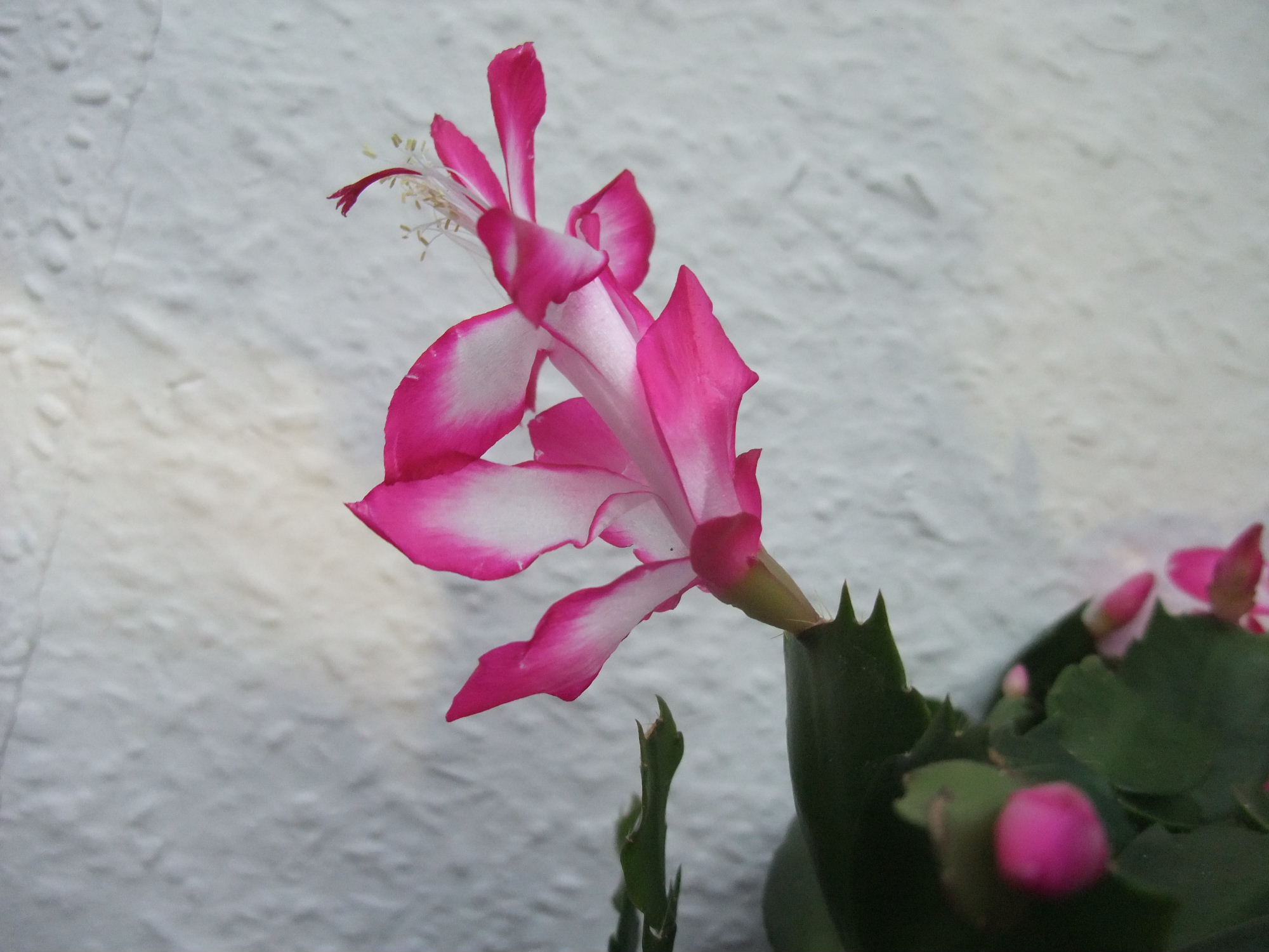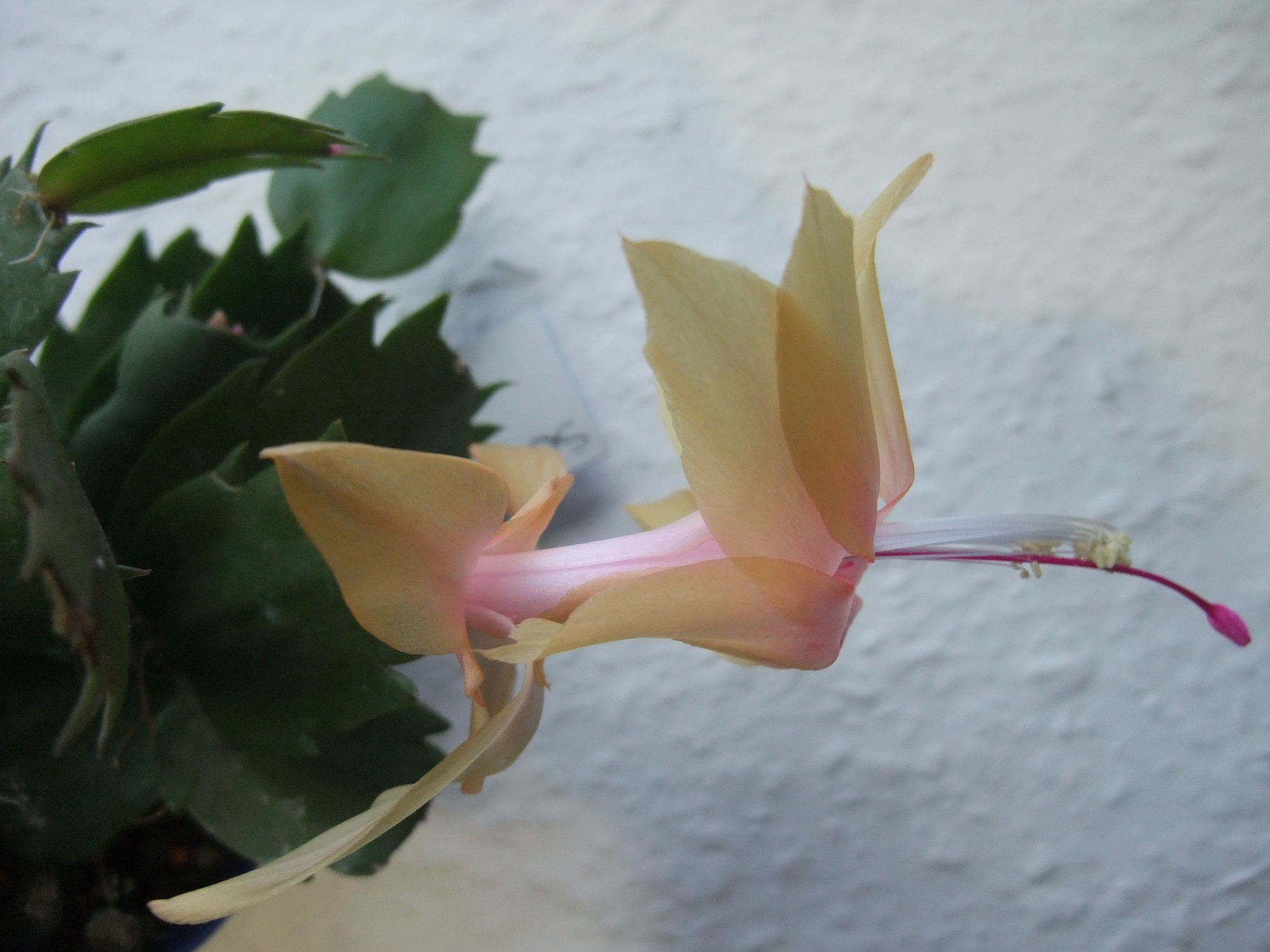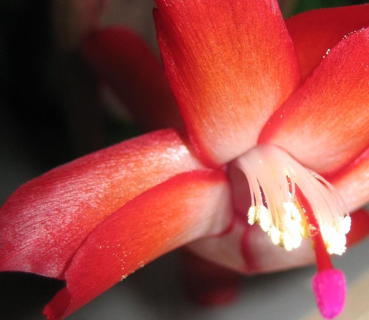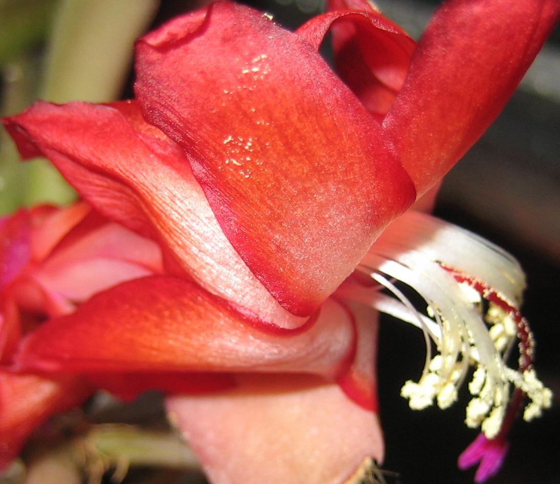 Über Weihnachten war ich bei meinen Eltern, da blühte gerade ein Schlumbi, den ich dort mal "gerettet", d.h. neu getopft und bisschen gepäppelt hatte. Die Farbe war eine Art dunkles Magenta, so ähnlich wie der von Wollschweber gezeigte (hab ihn nicht fotografiert, weil man die Farbe so gut wie nie originalgetreu aufs Bild kriegt). Obwohl ich ja EIGENTLICH keinen Platz mehr habe, hab ich mir ein paar Steckis mitgenommen. Bin mal gespannt, ob er diese Farbe behält, oder ob es eigentlich ein Roter ist, dem es ziemlich kalt war, bei meinen Eltern steht er nämlich im ungeheizten Gästebad