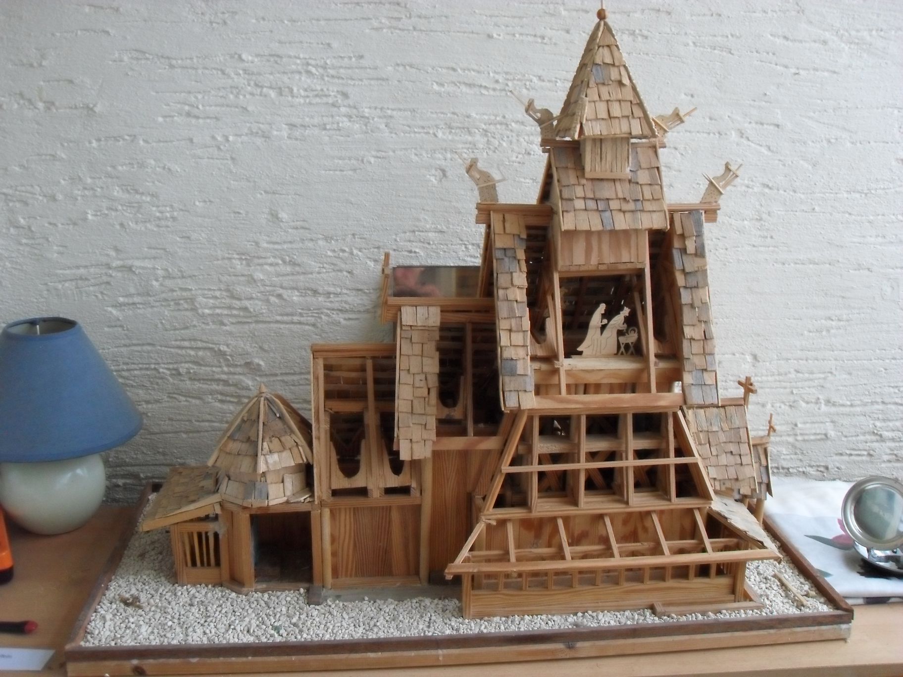 Die Krippe ist einer norwegischen Stabkirche nachempfunden. Das Dach kommt mir irgenwie fade vor.