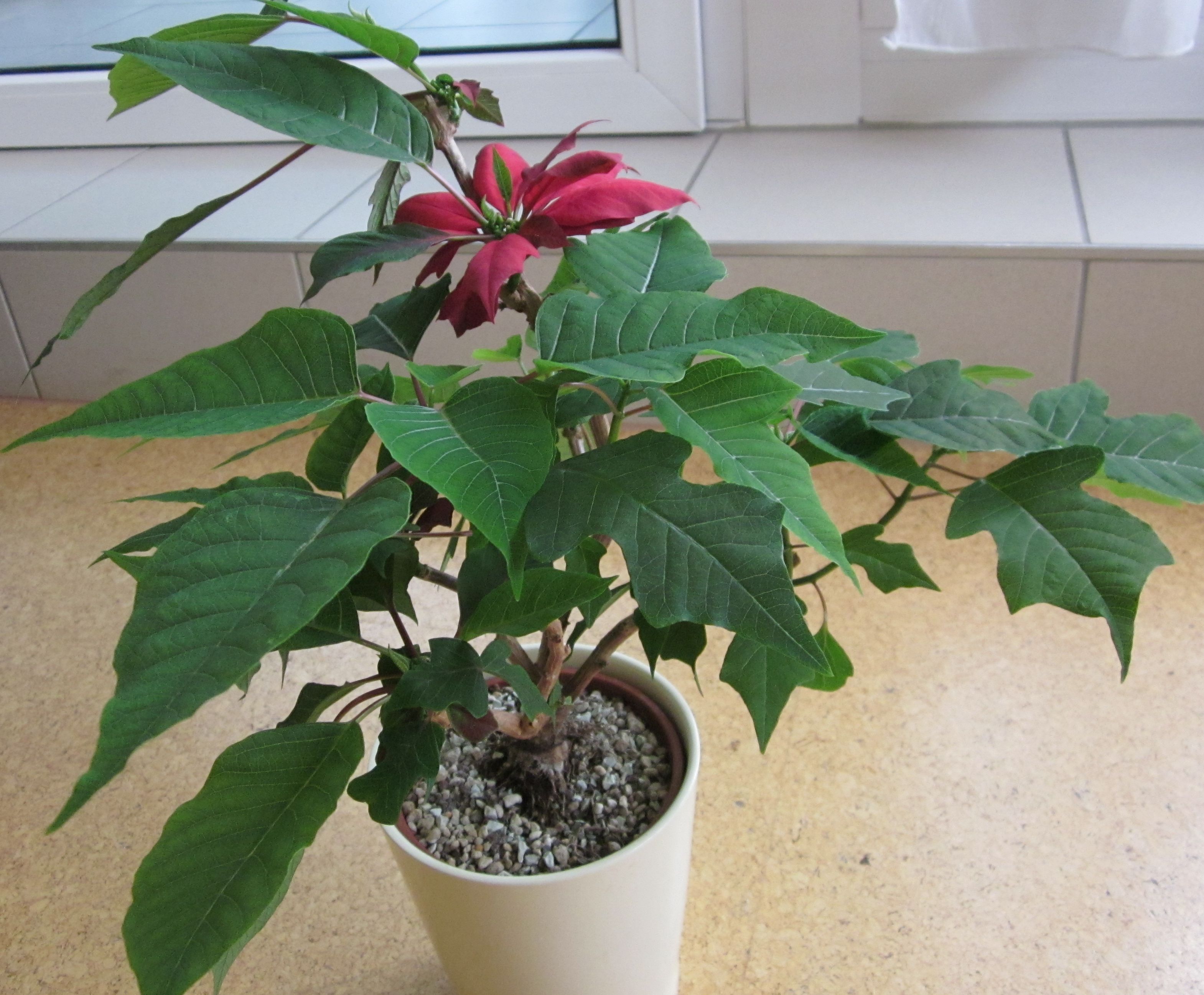 Da es mir beim Weihnachtsstern soweiso hauptsächlich darum geht ihn als grüne Pflanze weiterzukultivieren und gerne auch mal ein grosses Exemplar zu besitzen, fiel mir der Schnitt nur mässig schwer Ich bin gespannt was da jetzt so kommt.