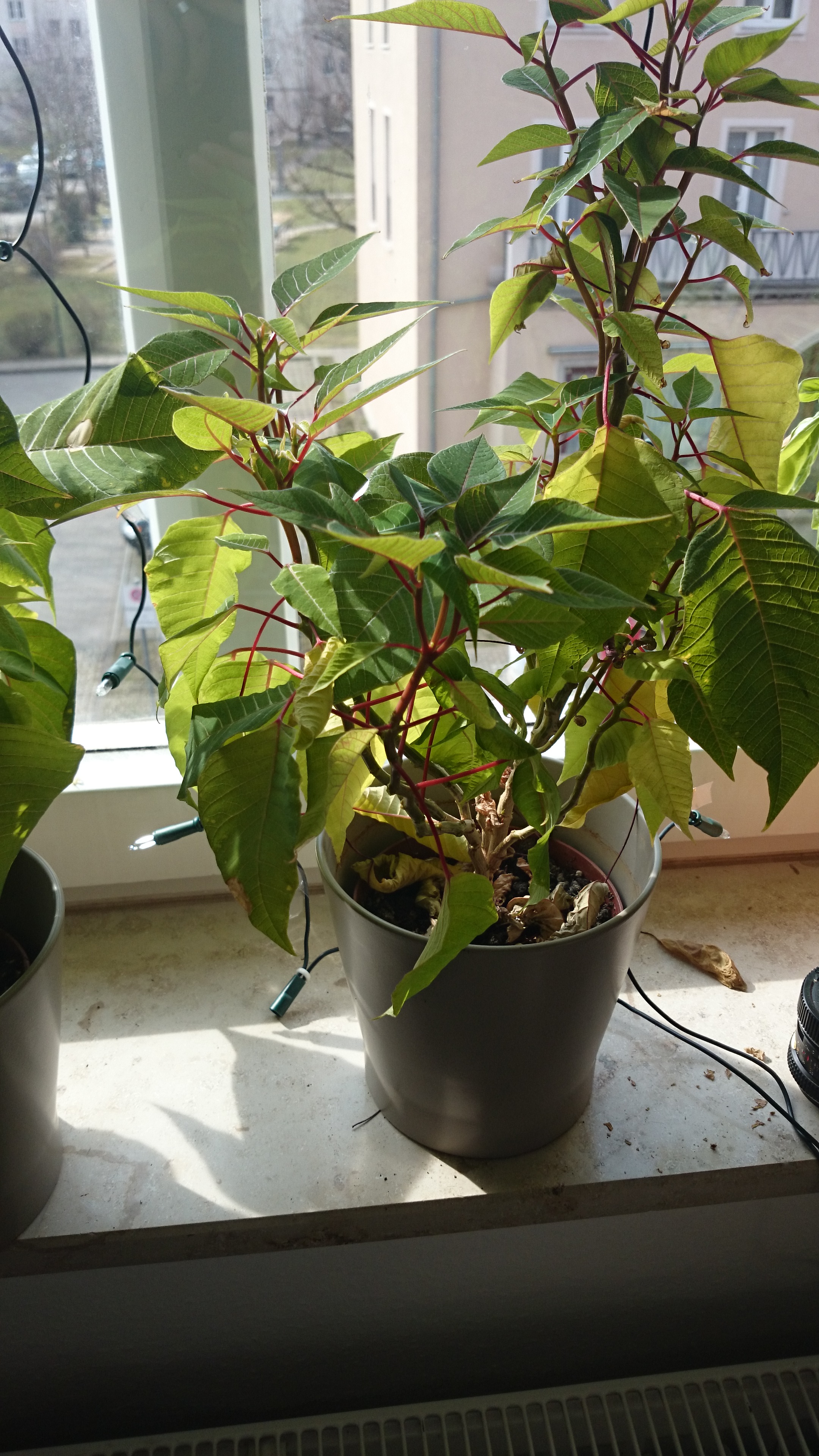 Seit etwas über einem Jahr besitze ich zwei Weihnachtssterne. Nachdem ich sie letztes Weihnachten als kleine Deko gekauft habe, haben sie sich im vergangenen Jahr sehr gut entwickelt und sind deutlich gewachsen. Zwar konnte ich sie dieses Jahr nicht zum Rotwerden überreden, aber das habe ich ihnen nicht übel genommen