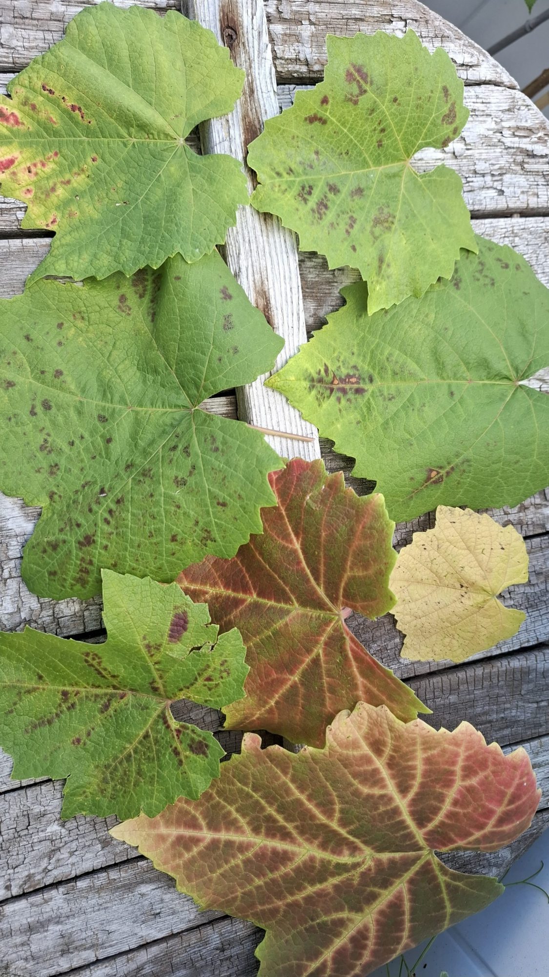 vielleicht weiß jemand, was für eine Krankheit mein Wein hat? Die Blätter sind sehr unterschiedlich verfärbt. Siehe Fotos.