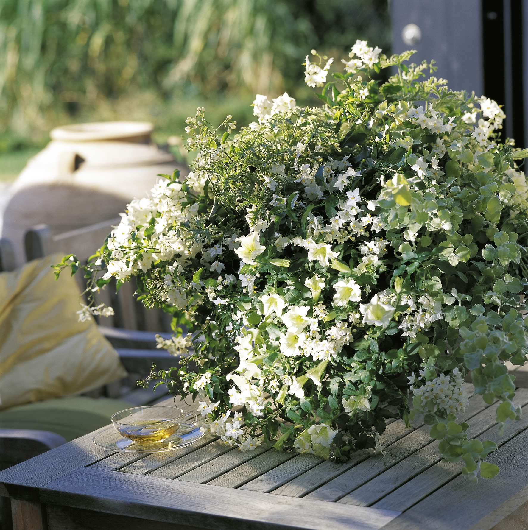 Weiße Blüher sind etwas Besonderes. Sie bringen die farbigen Blüten ihrer Nachbarn noch stärker zum Leuchten und unterstützen sie in ihrer Wirkung. Gestaltet man eine Terrasse ganz in Weiß, wirkt sie edel und stilvoll. Doch auch weiße Blüten brauchen Aufmerksamkeit. Damit die Eleganz weißer Blüher lange anhält, sollte Verwelktes regelmäßig entfernt werden. Denn braune Blüten und Blätter fallen neben strahlendem Weiß auch deutlicher auf.