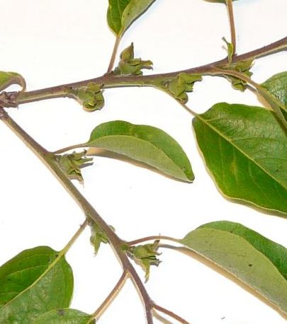Ich fand den Baum, zu dem dieser Zweig gehört in Mittelportugal in einem angepflanzten Garten. Die Bäume dieser Art sind dort ca. 6-8m hoch. Weiß jemand, was das für ein Gehölz ist? In den Blattachseln sind die Reste von Blüten zu sehen, wenn man genau hinsieht.