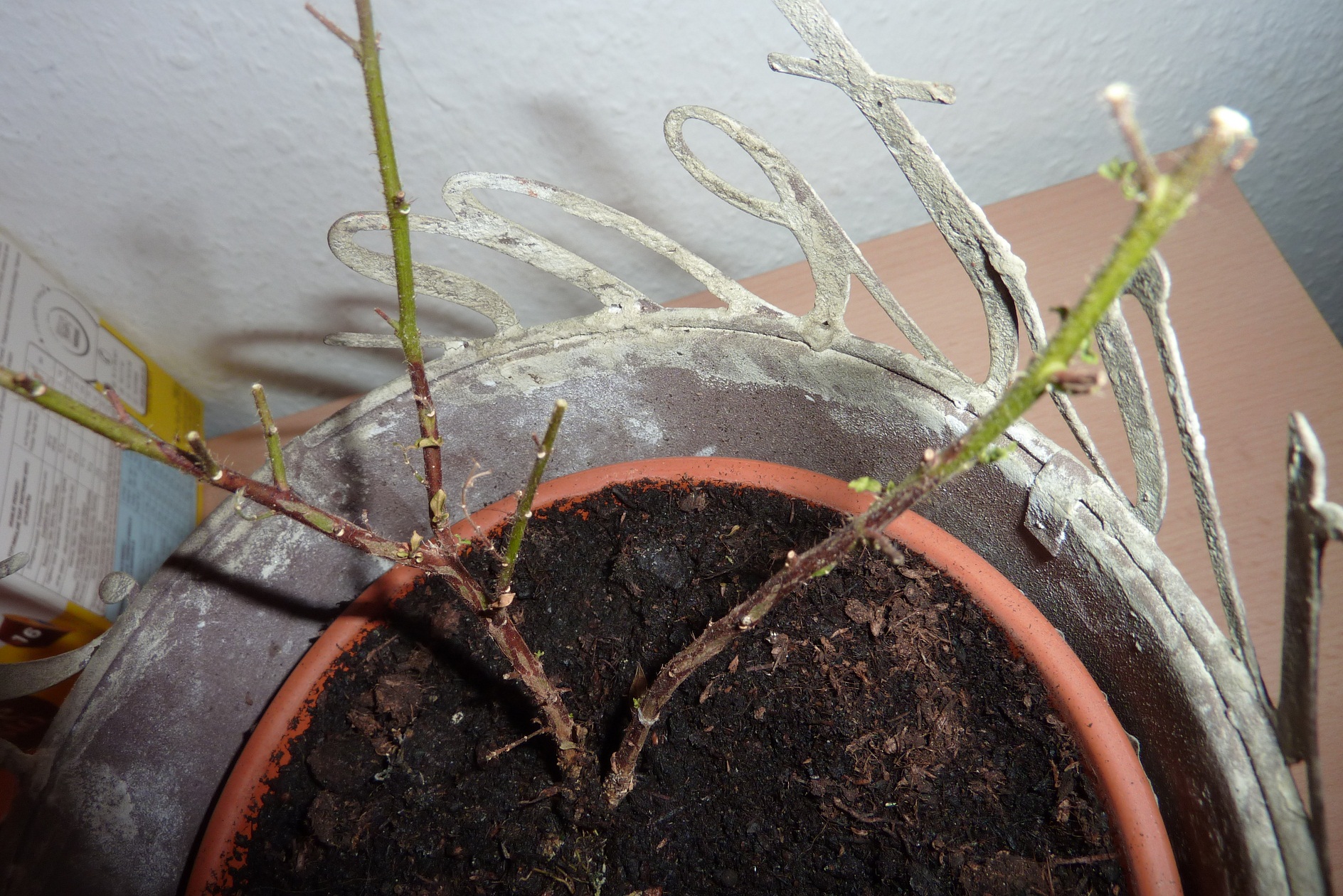 Und sie sah auch natürlich nicht gut aus als sie mir die zur Pflege gegeben hat mit ich sie wieder >aufpeppeln< soll. Und dann habe ich mich ins Zeug gelegt und verssuche halt jetzt mein Bestes. habe sie als erstes Umgetopft und gleichzeitig nach denn Wurzeln geschaut, und die sahen supi aus. Habe sie anschließent zurückgeschnitten bzw das vertrocknete und kaputte abgeschnitten. Und ich bin eigentlich noch gute Dinge, das ich sie wieder belebt bekomme, weil sie noch grüne Zweige hat.