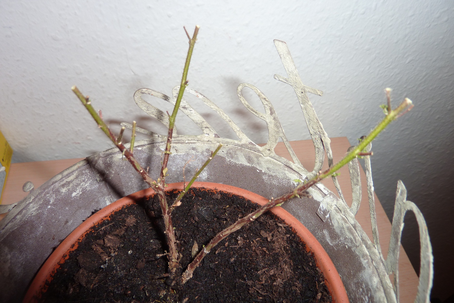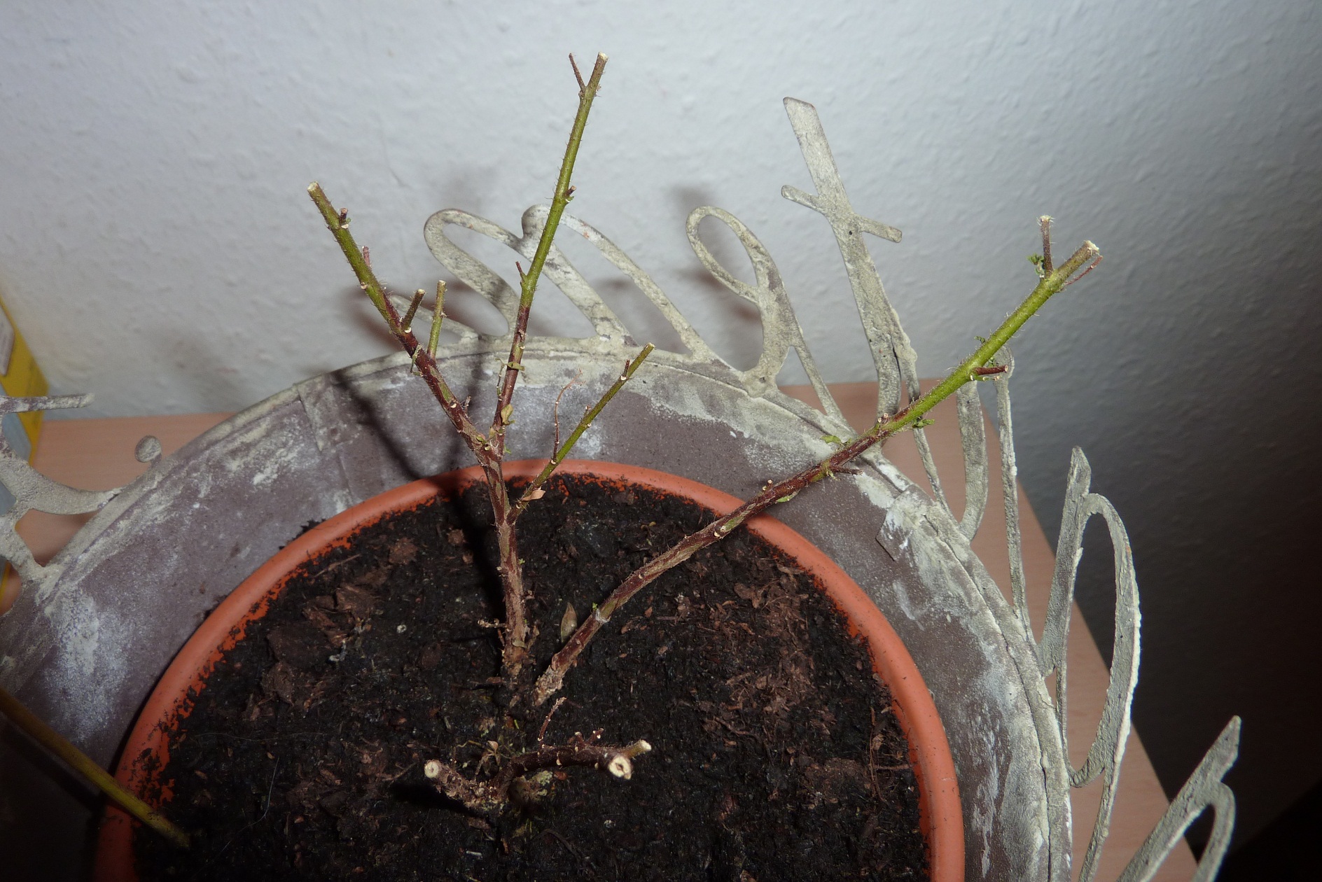 Und sie sah auch natürlich nicht gut aus als sie mir die zur Pflege gegeben hat mit ich sie wieder >aufpeppeln< soll. Und dann habe ich mich ins Zeug gelegt und verssuche halt jetzt mein Bestes. habe sie als erstes Umgetopft und gleichzeitig nach denn Wurzeln geschaut, und die sahen supi aus. Habe sie anschließent zurückgeschnitten bzw das vertrocknete und kaputte abgeschnitten. Und ich bin eigentlich noch gute Dinge, das ich sie wieder belebt bekomme, weil sie noch grüne Zweige hat.