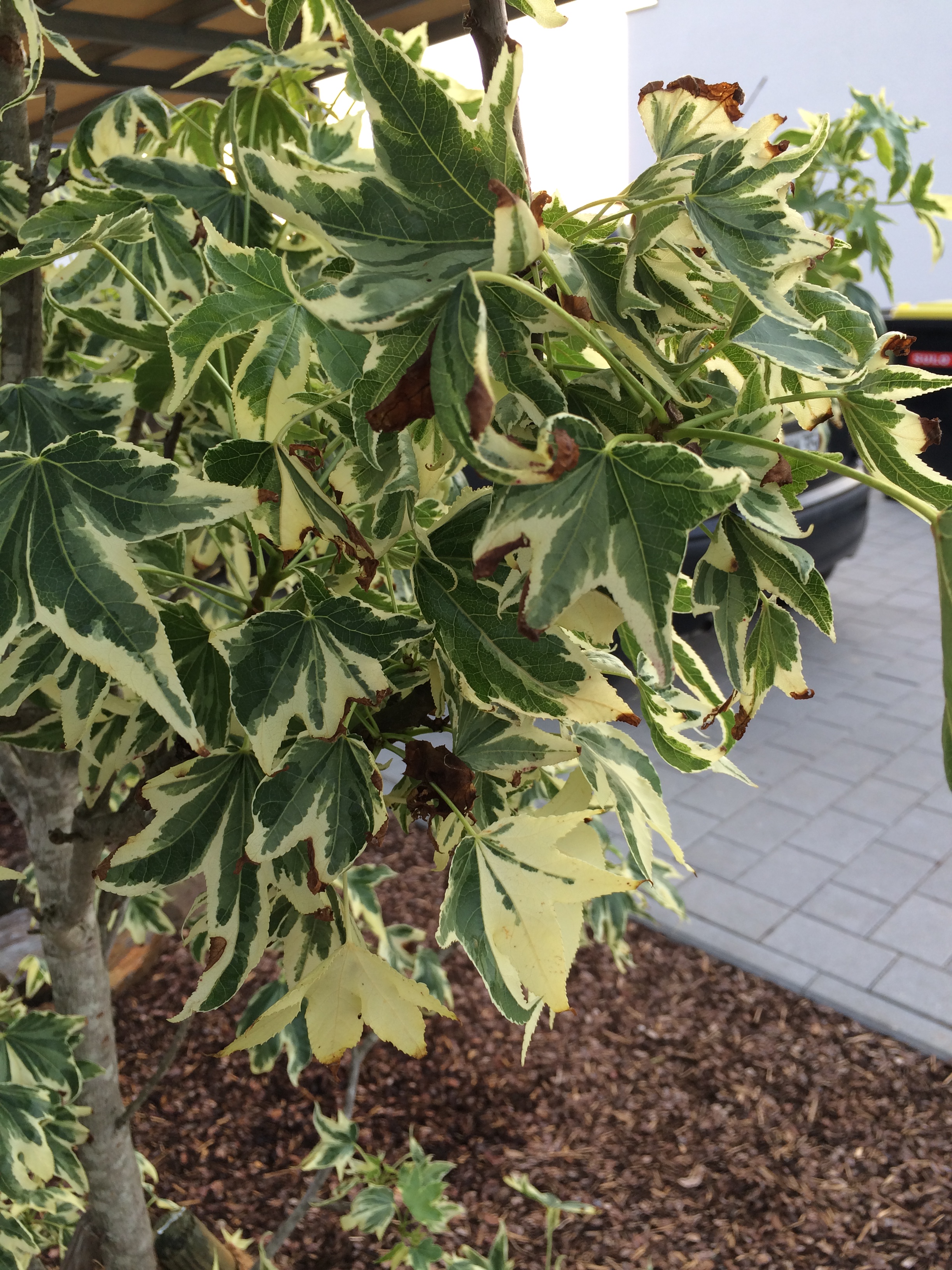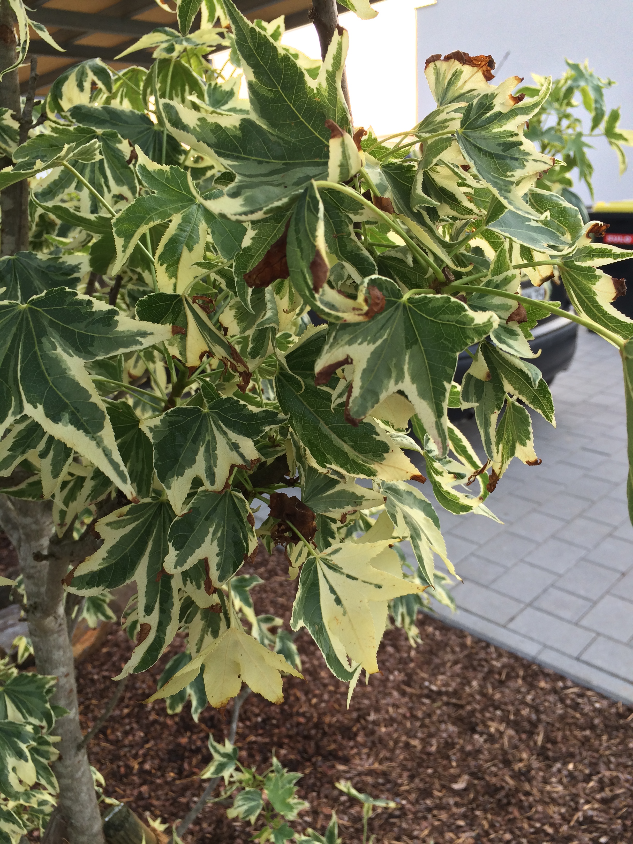 Weißbunter Amberbaum - Verbrannte Blätter